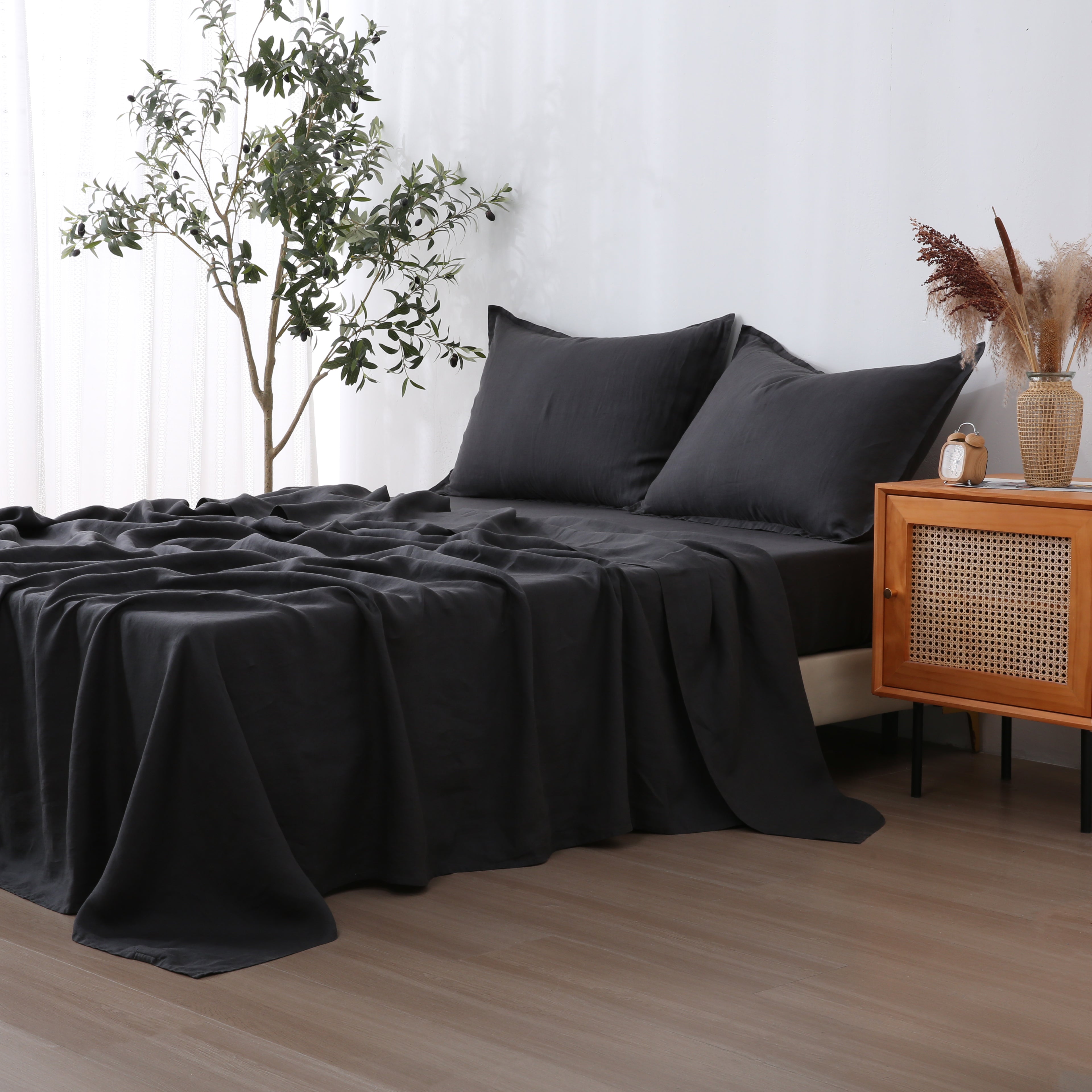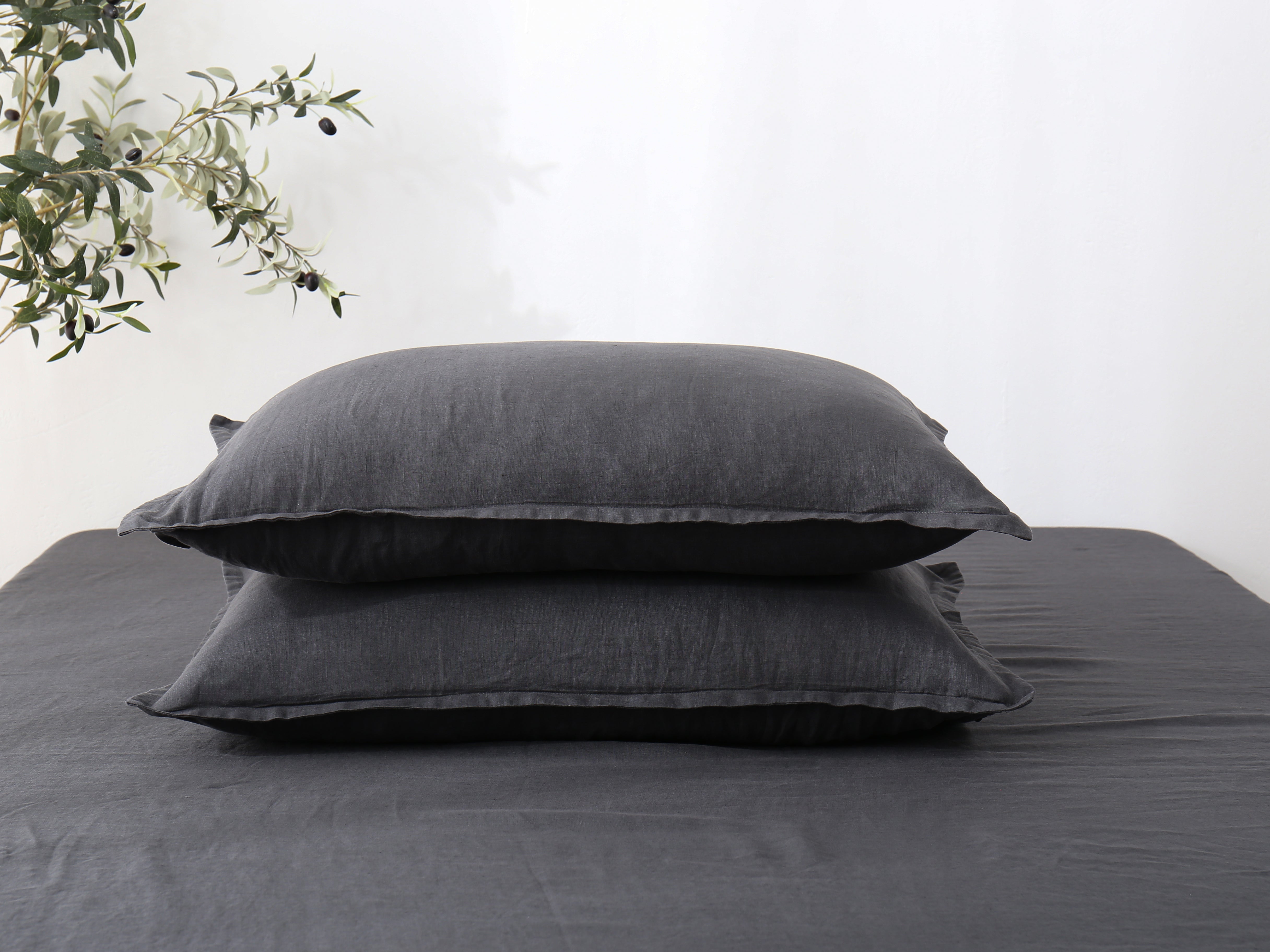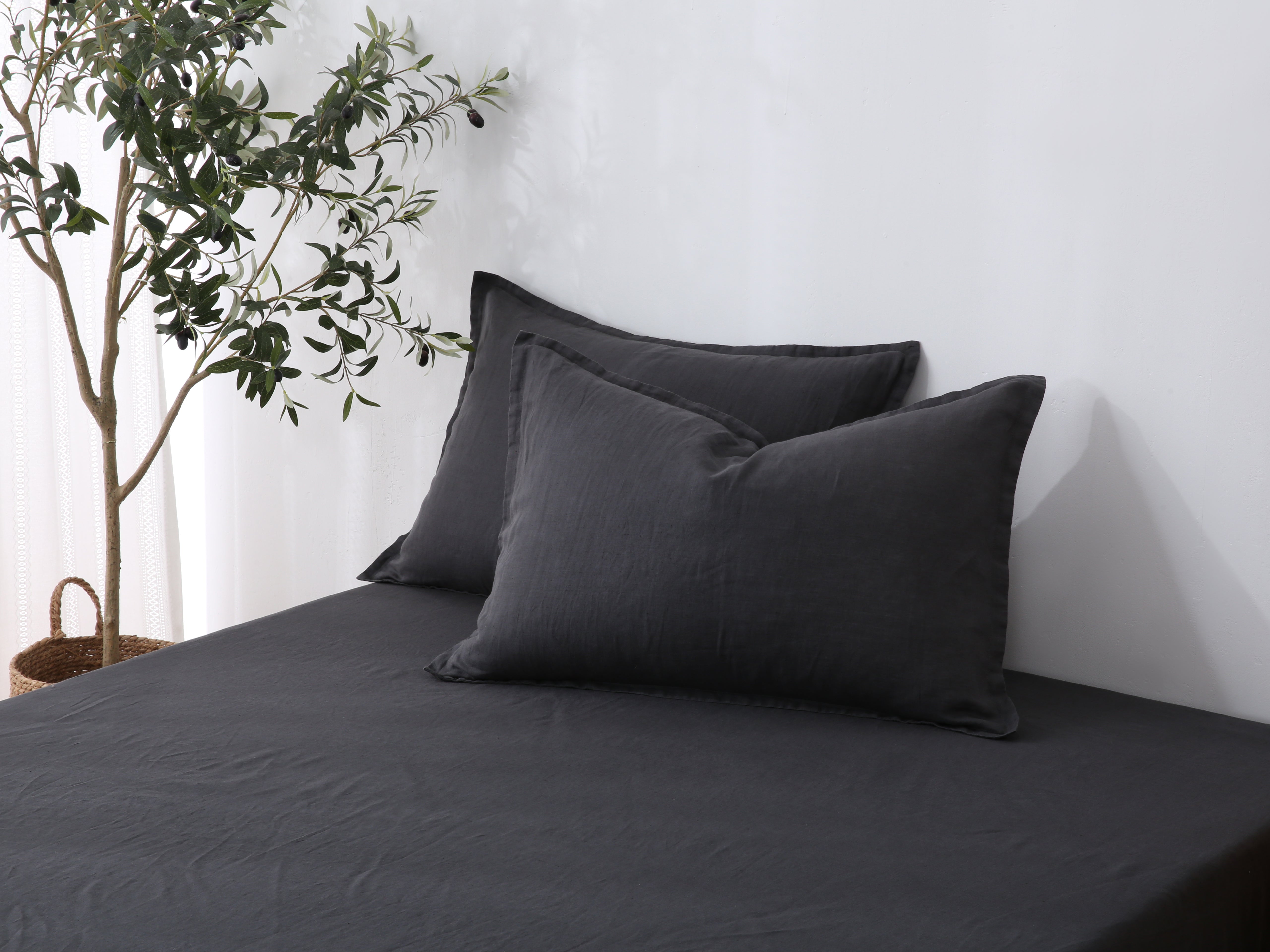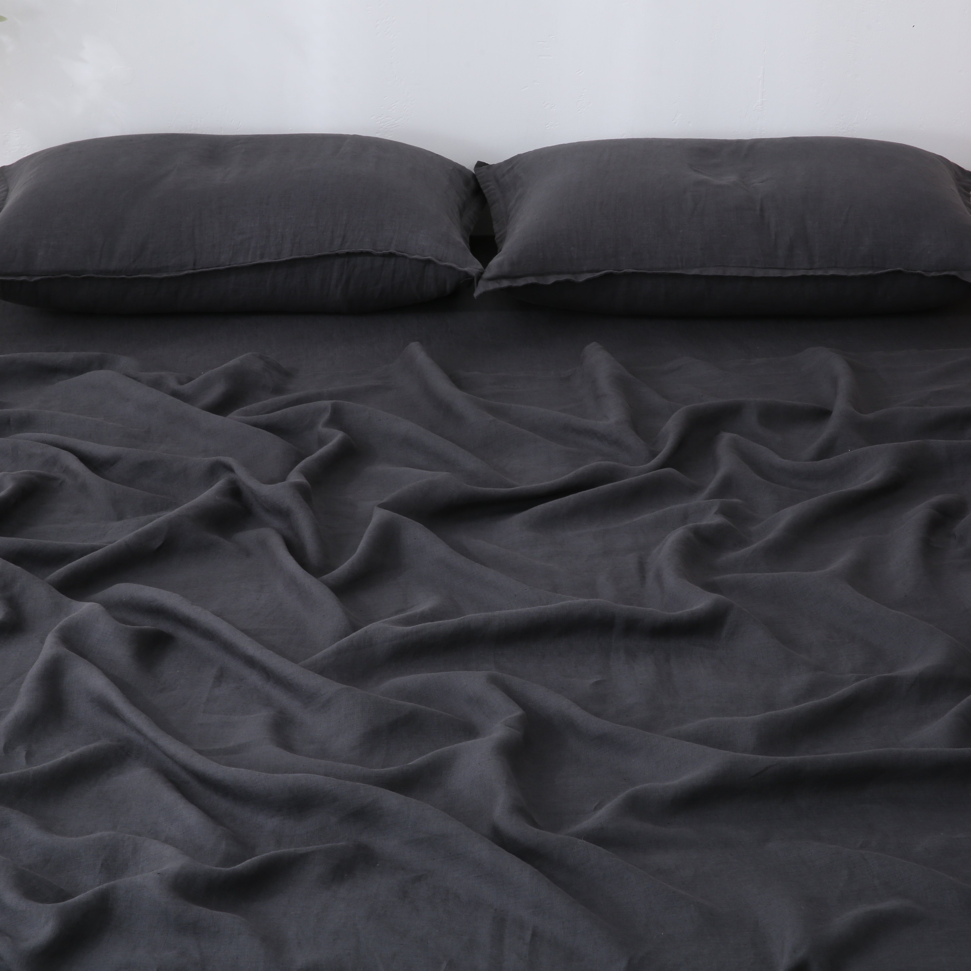 Our "Charcoal" Sheet Set is Stonewashed 100% French Flax Linen.