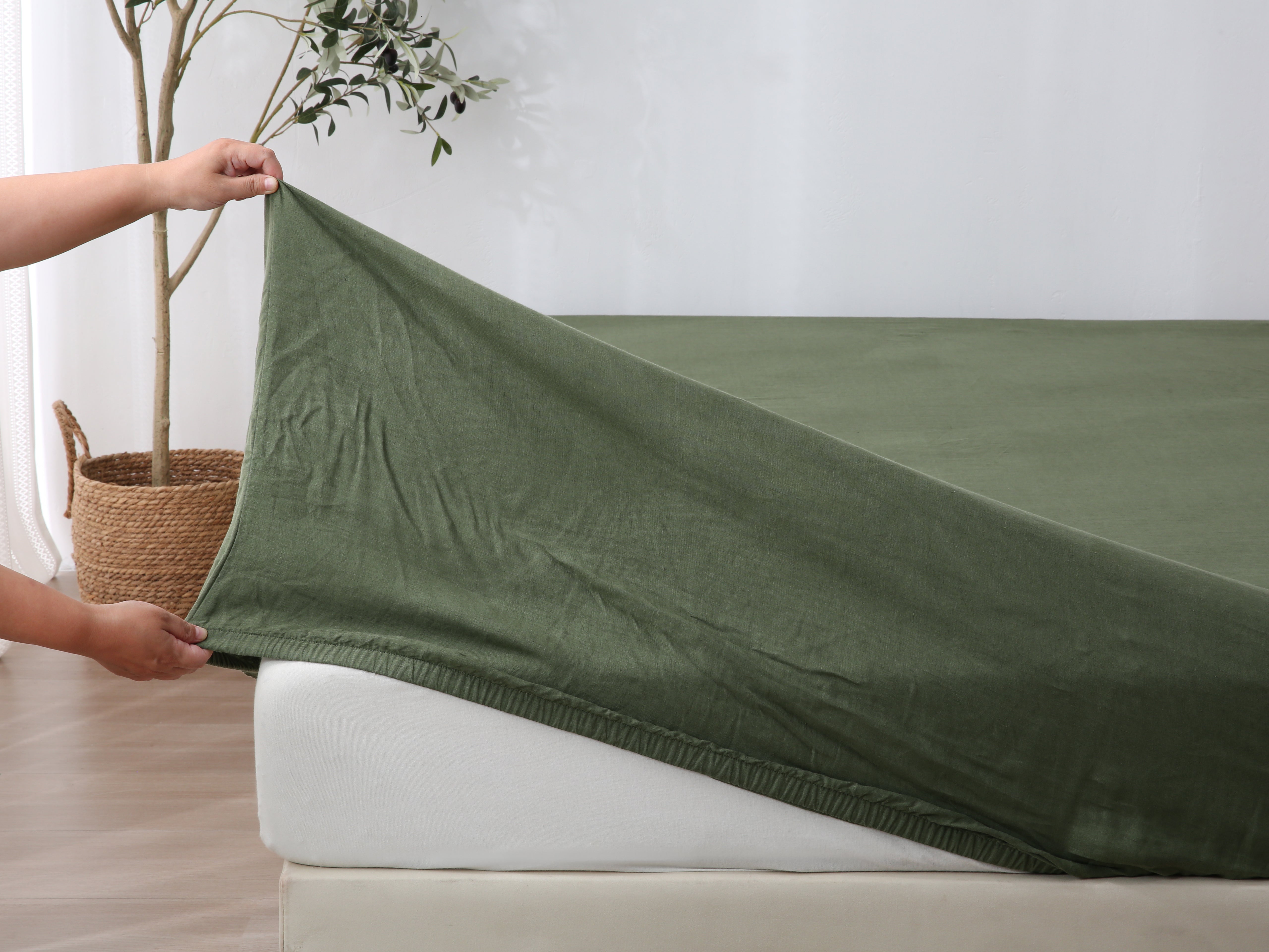 Linen Fitted Sheet - Forest