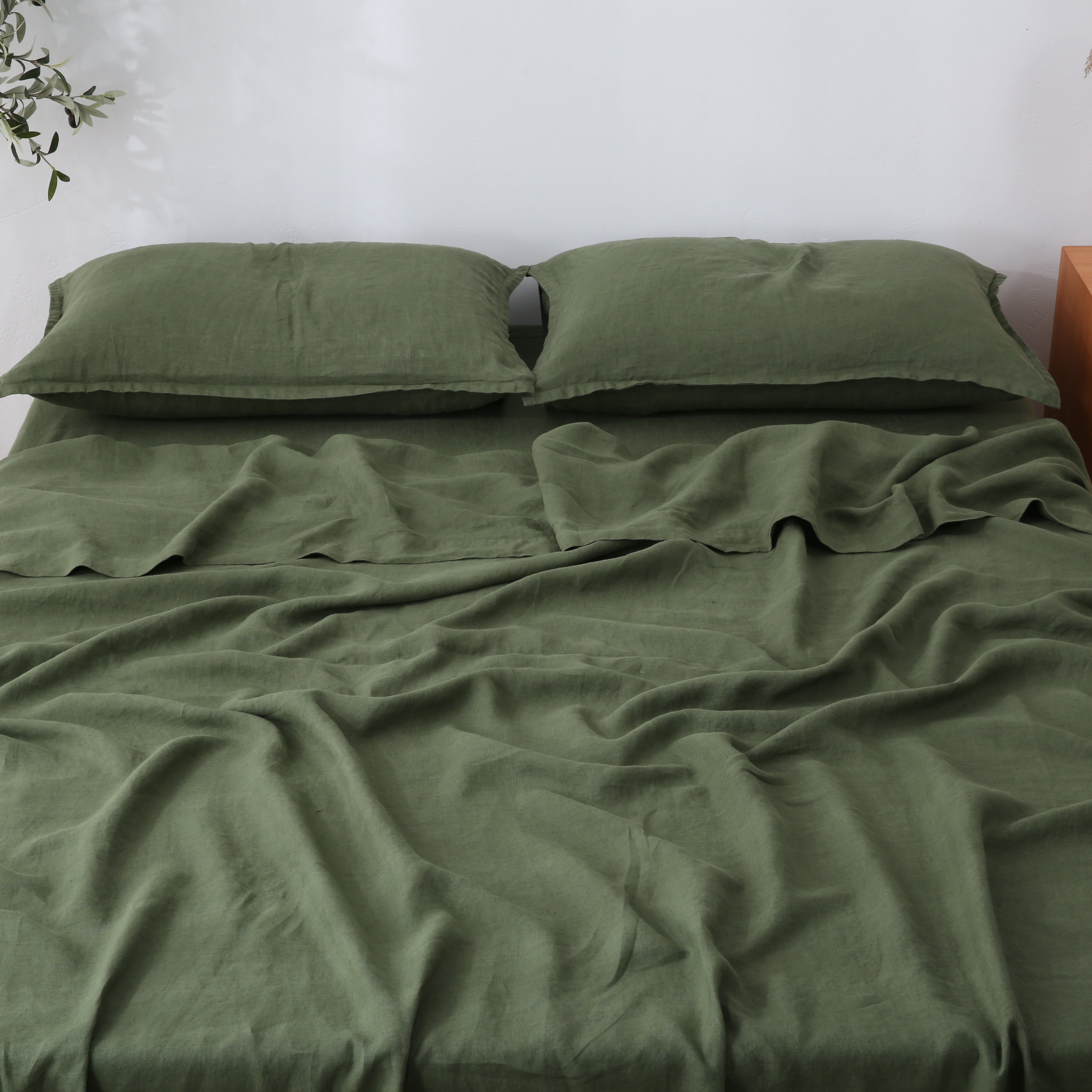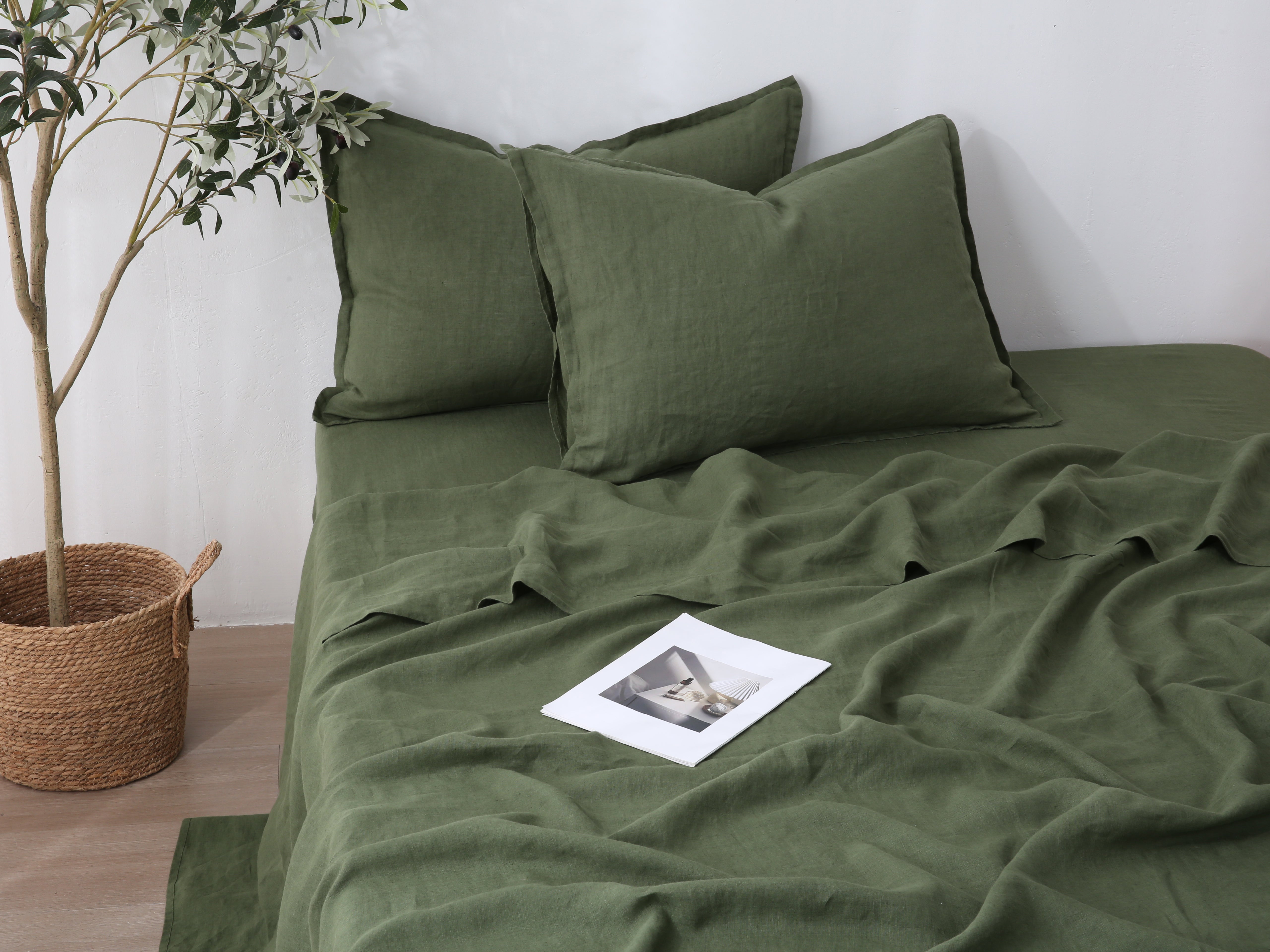 Our "FOREST Sheet Set is Stonewashed 100% French Flax Linen.