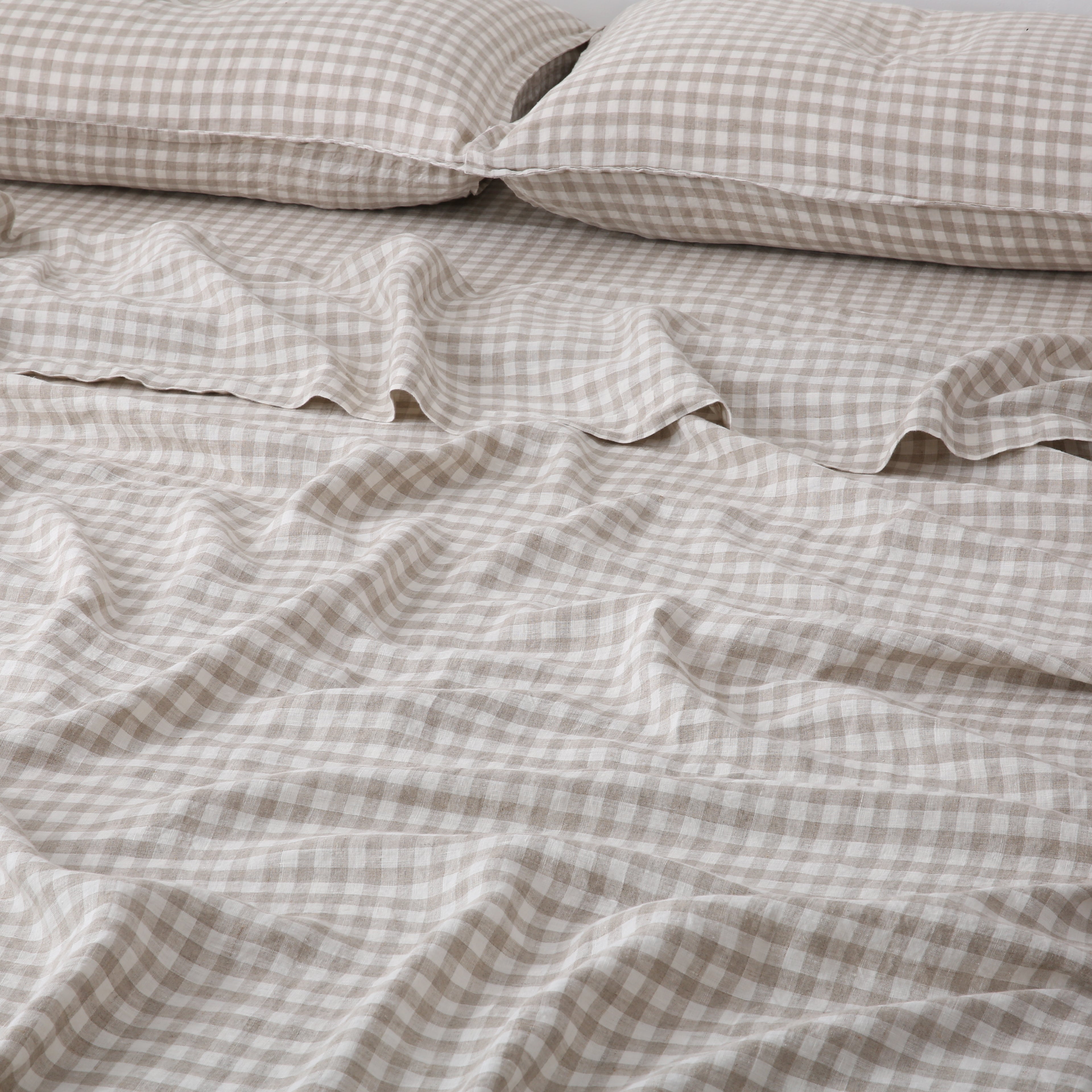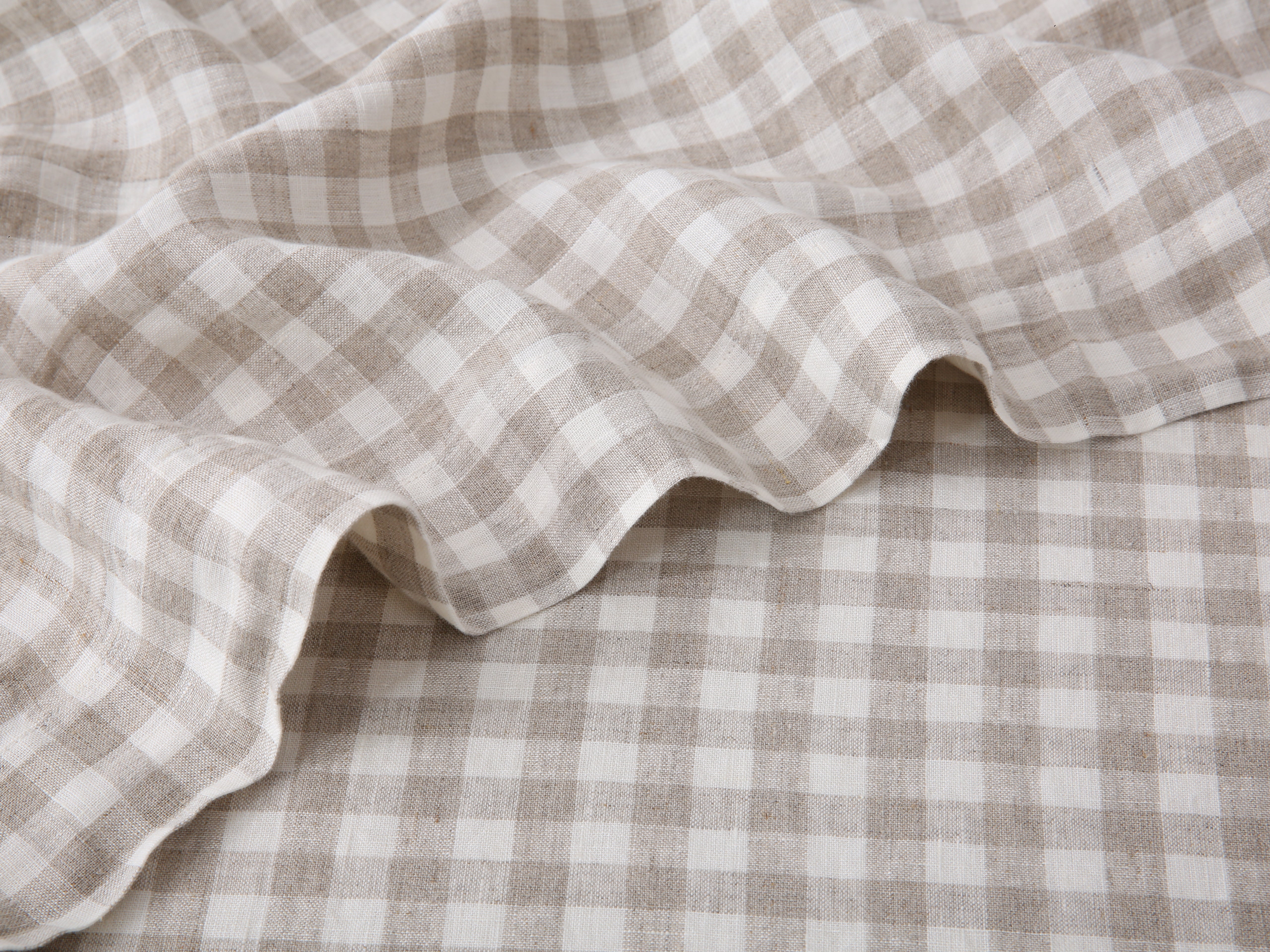 Our "BEIGE GINGHAM" Flat Sheet is Stonewashed 100% French Flax Linen.