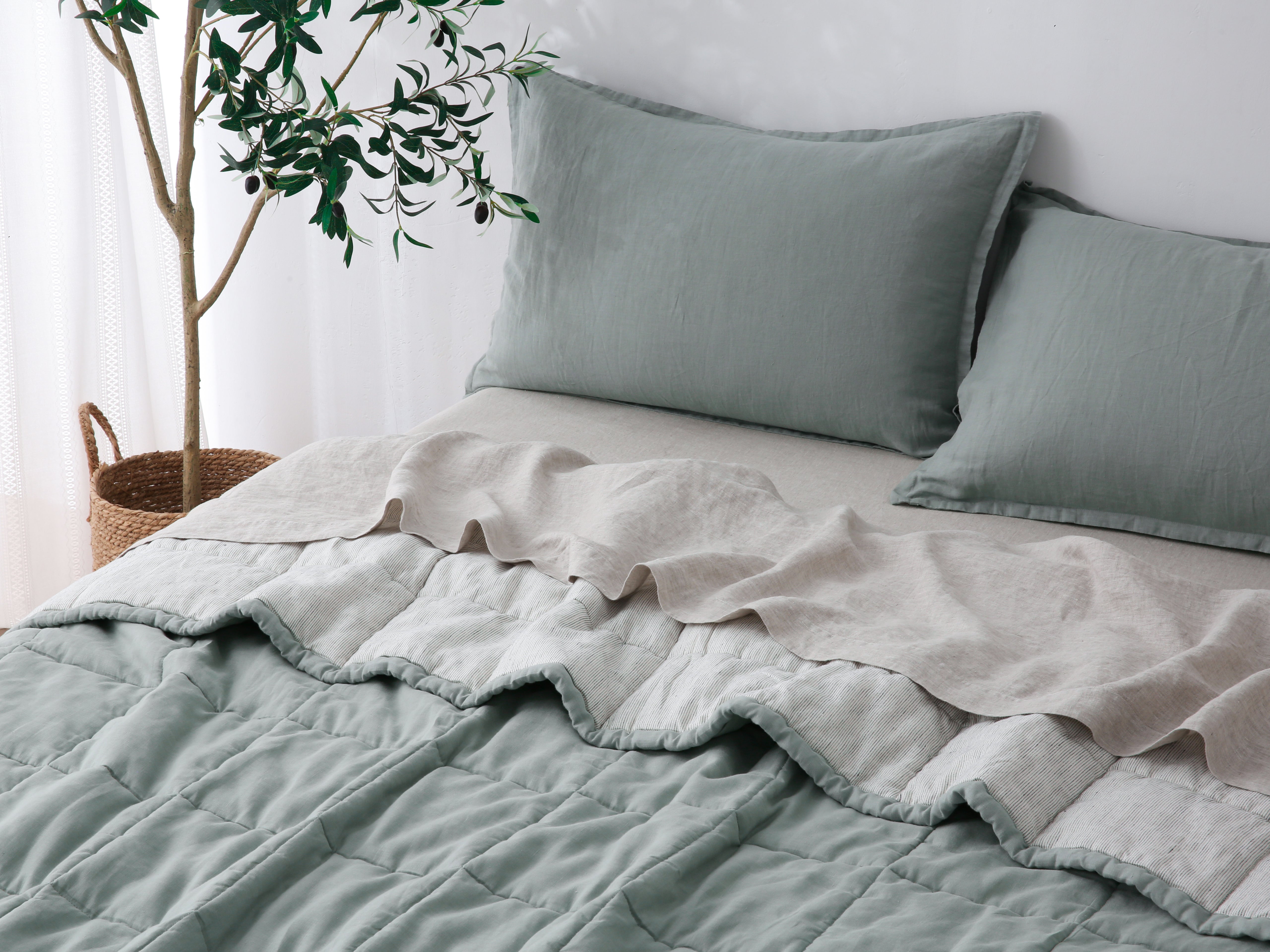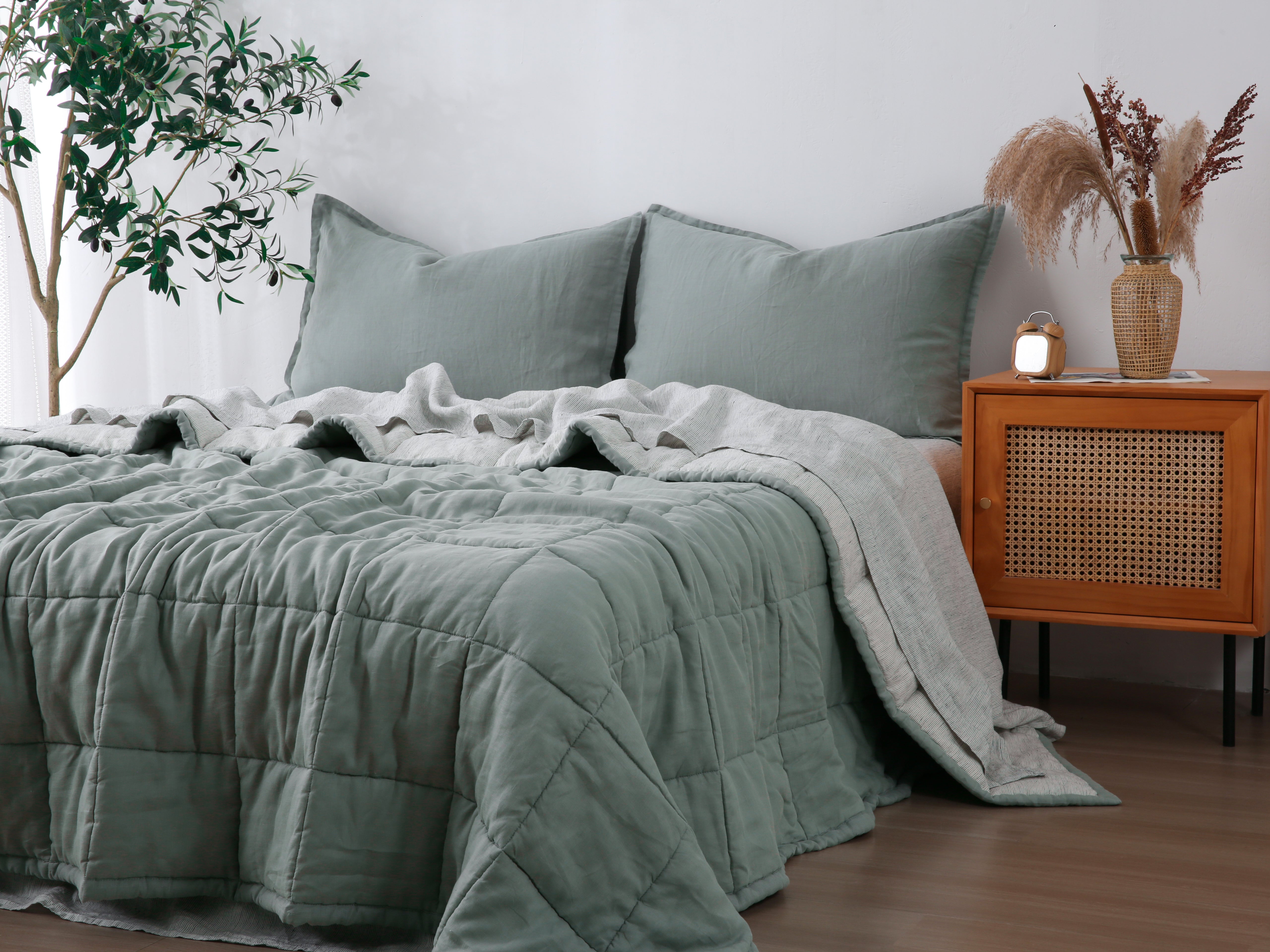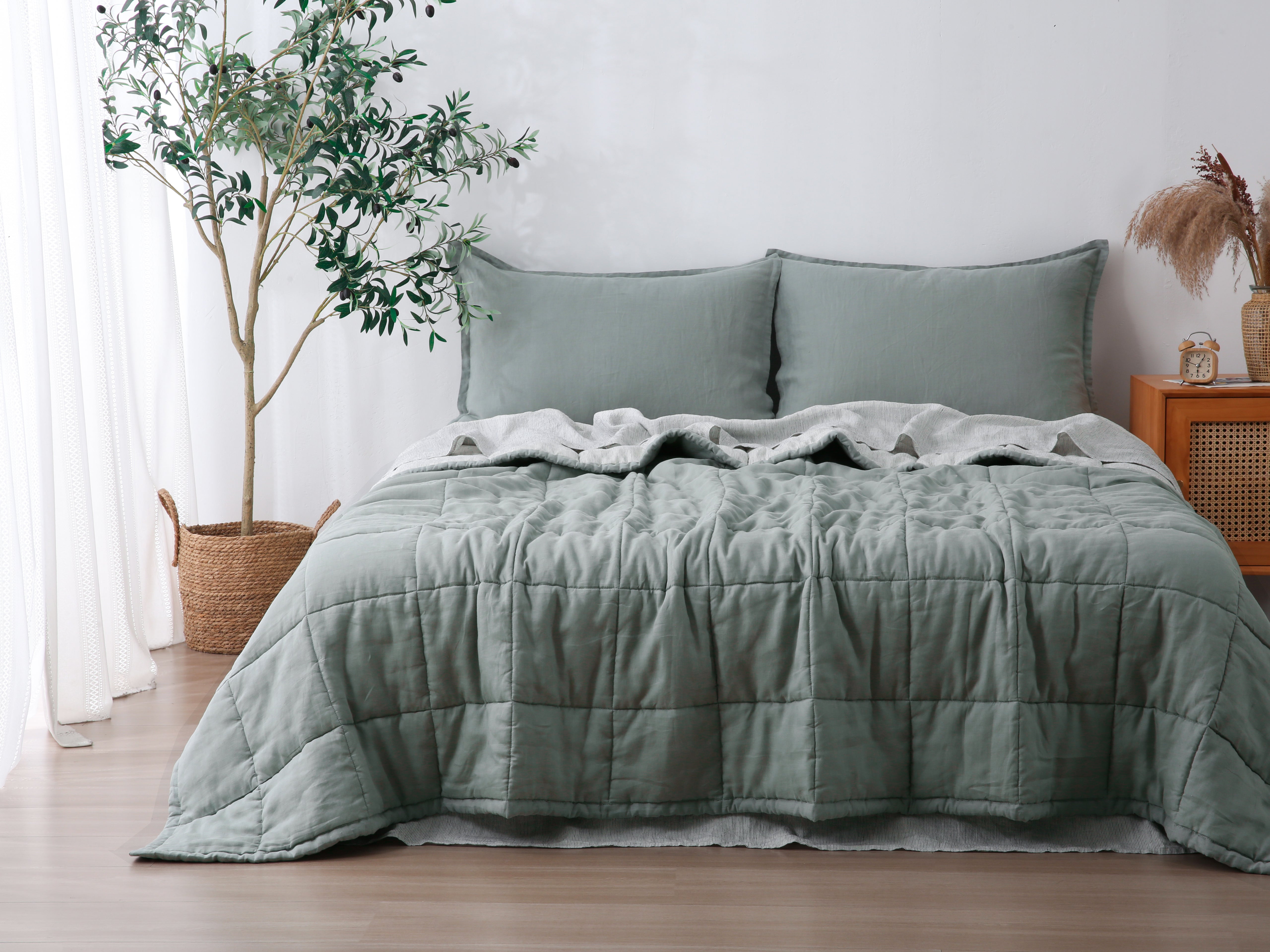 Quilted Linen Blanket - FERN - Selah + Stone Quilted Linen Blanket - FERN - Selah + Stone
