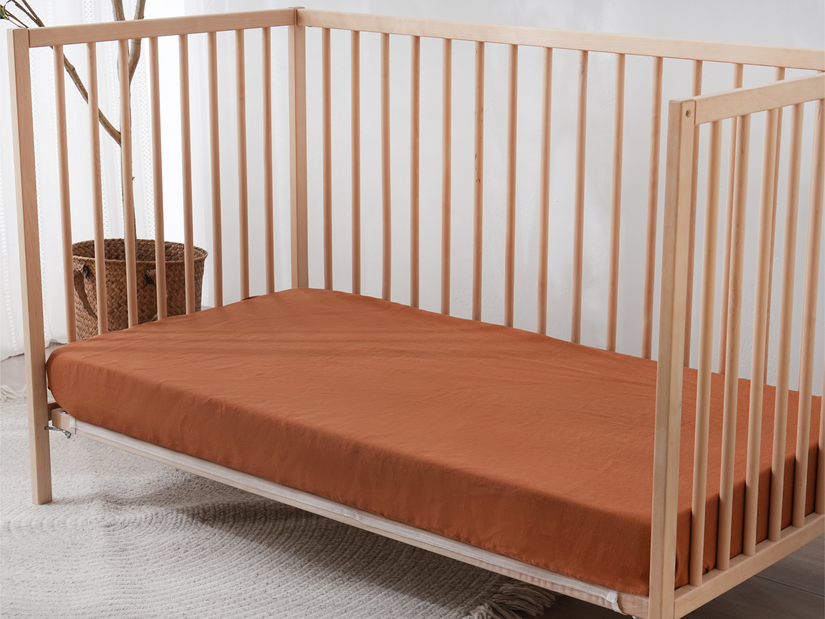 Our fitted sheets are 100% stonewashed french flax linen, in stunning curated colors carefully selected to pair with our swaddles and quilted blankets. They are textured and feel amazing, as well as adding a touch of effortless, simplistic beauty to your little ones room.