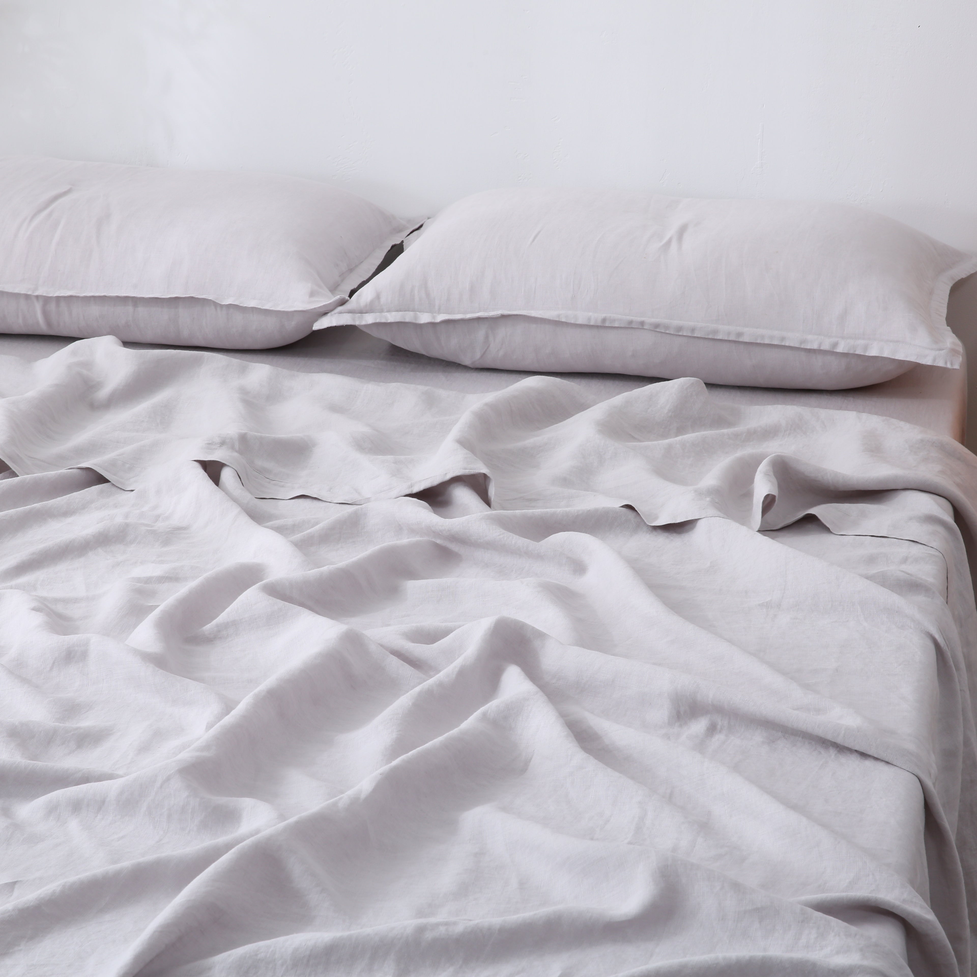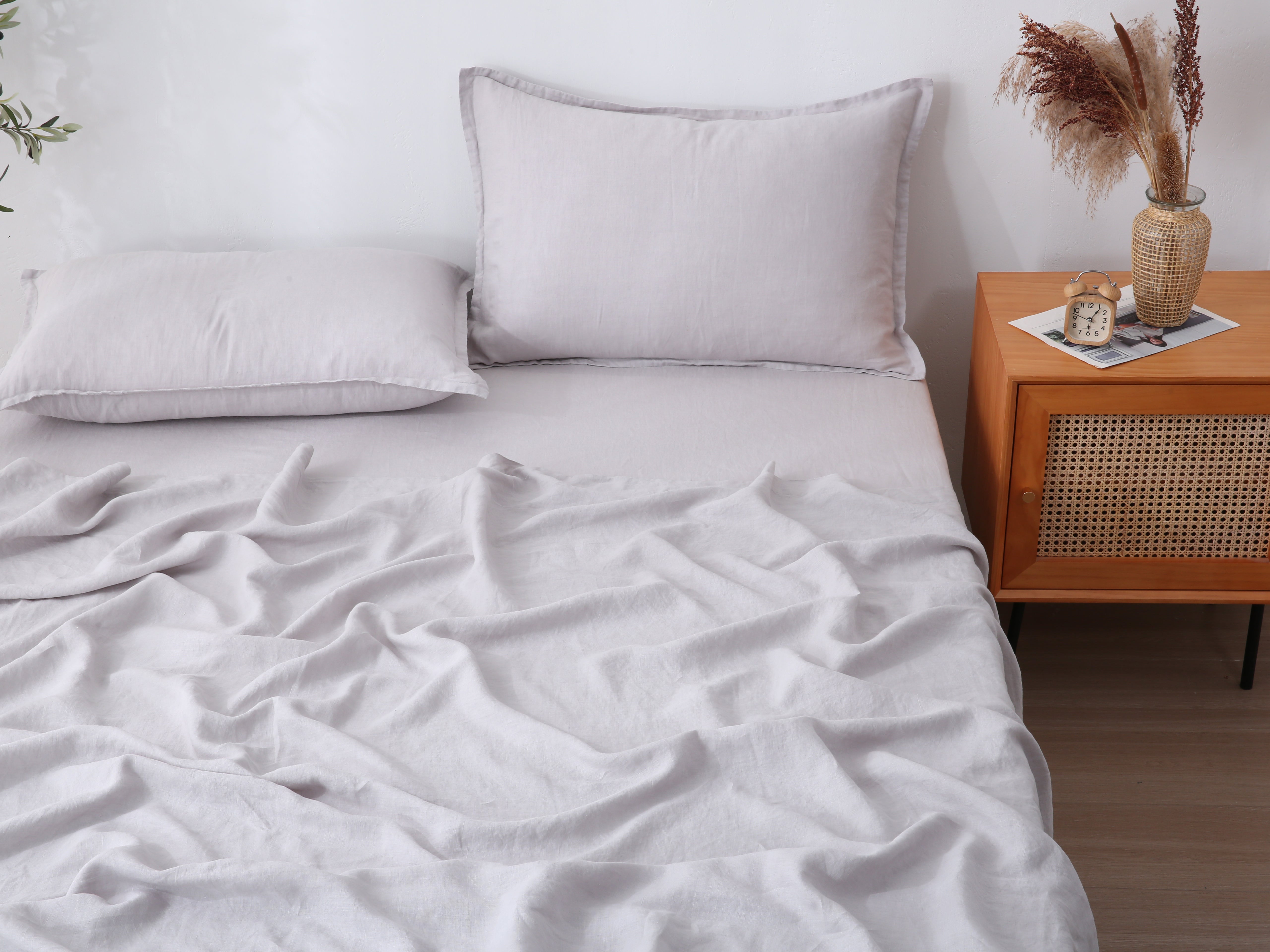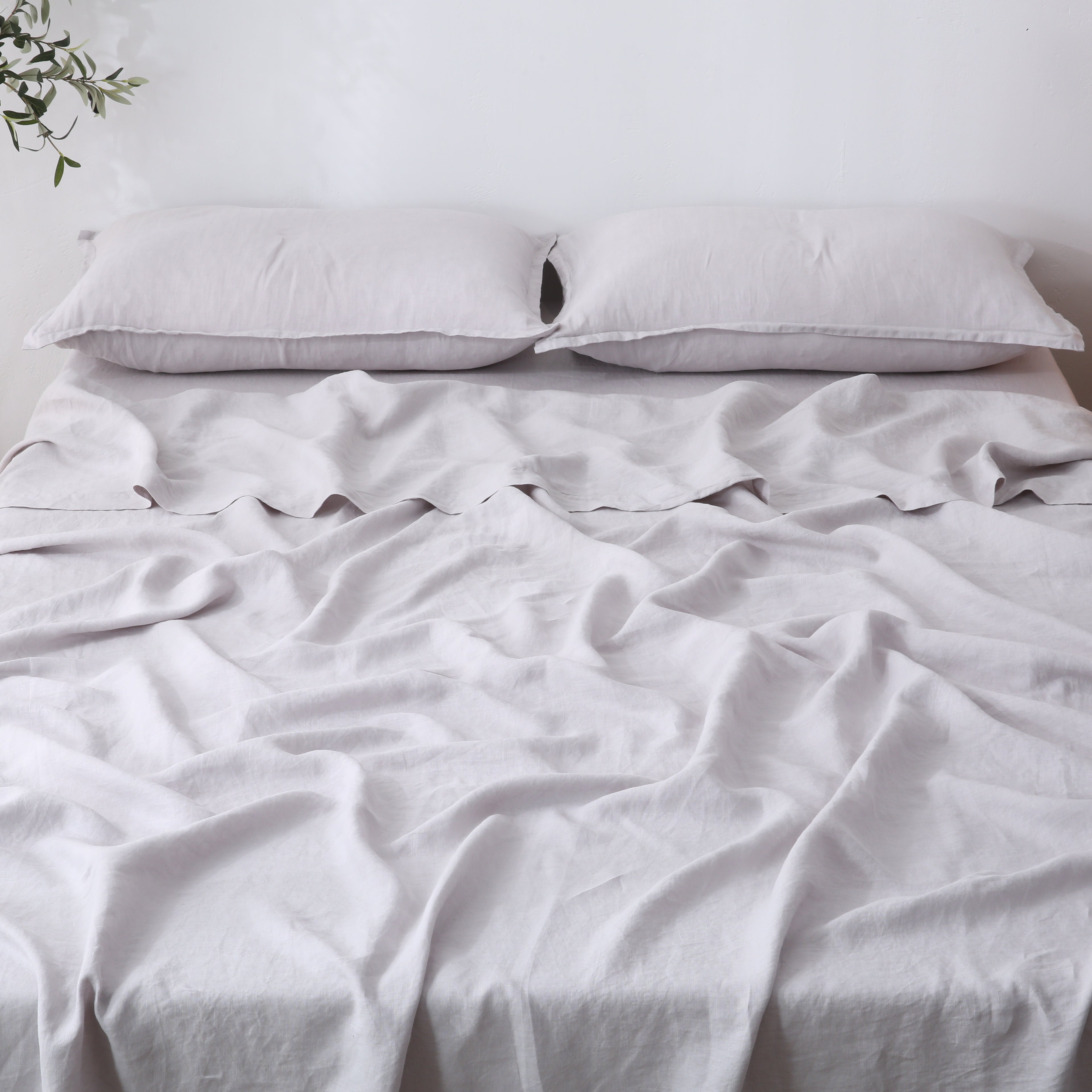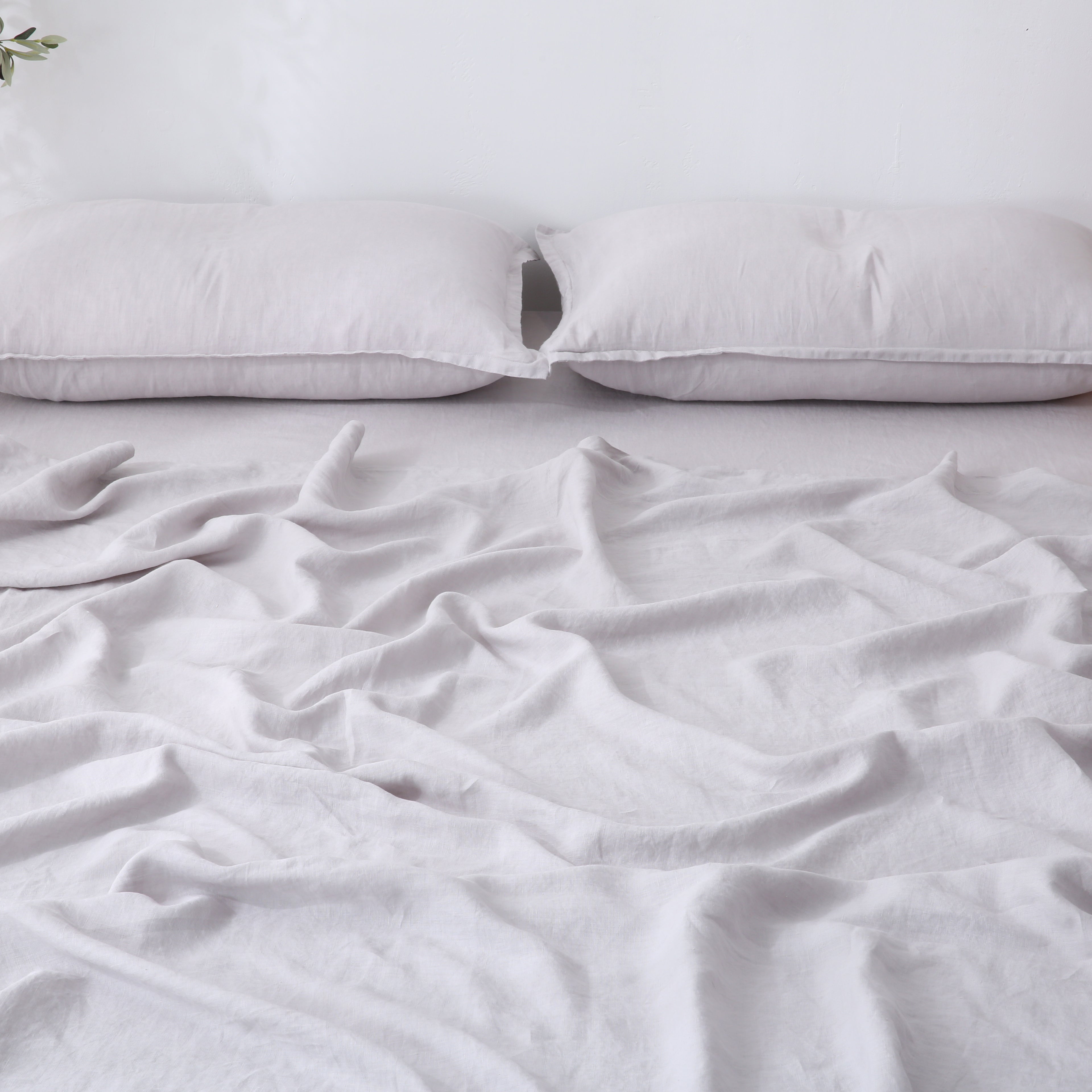 Our "Mist" Sheet Set is Stonewashed 100% French Flax Linen.
