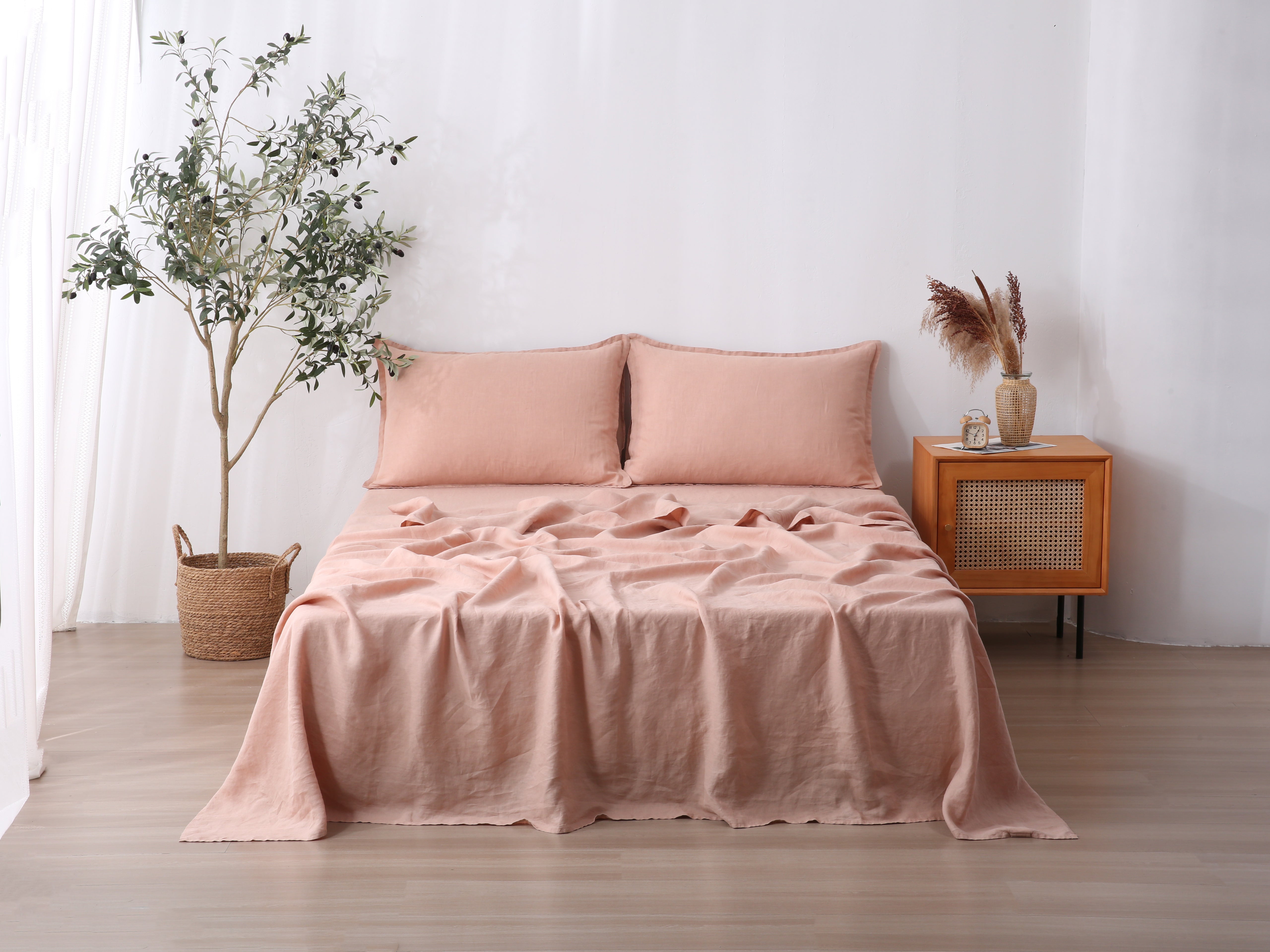 Our "PINK CLAY" Flat Sheet is Stonewashed 100% French Flax Linen.