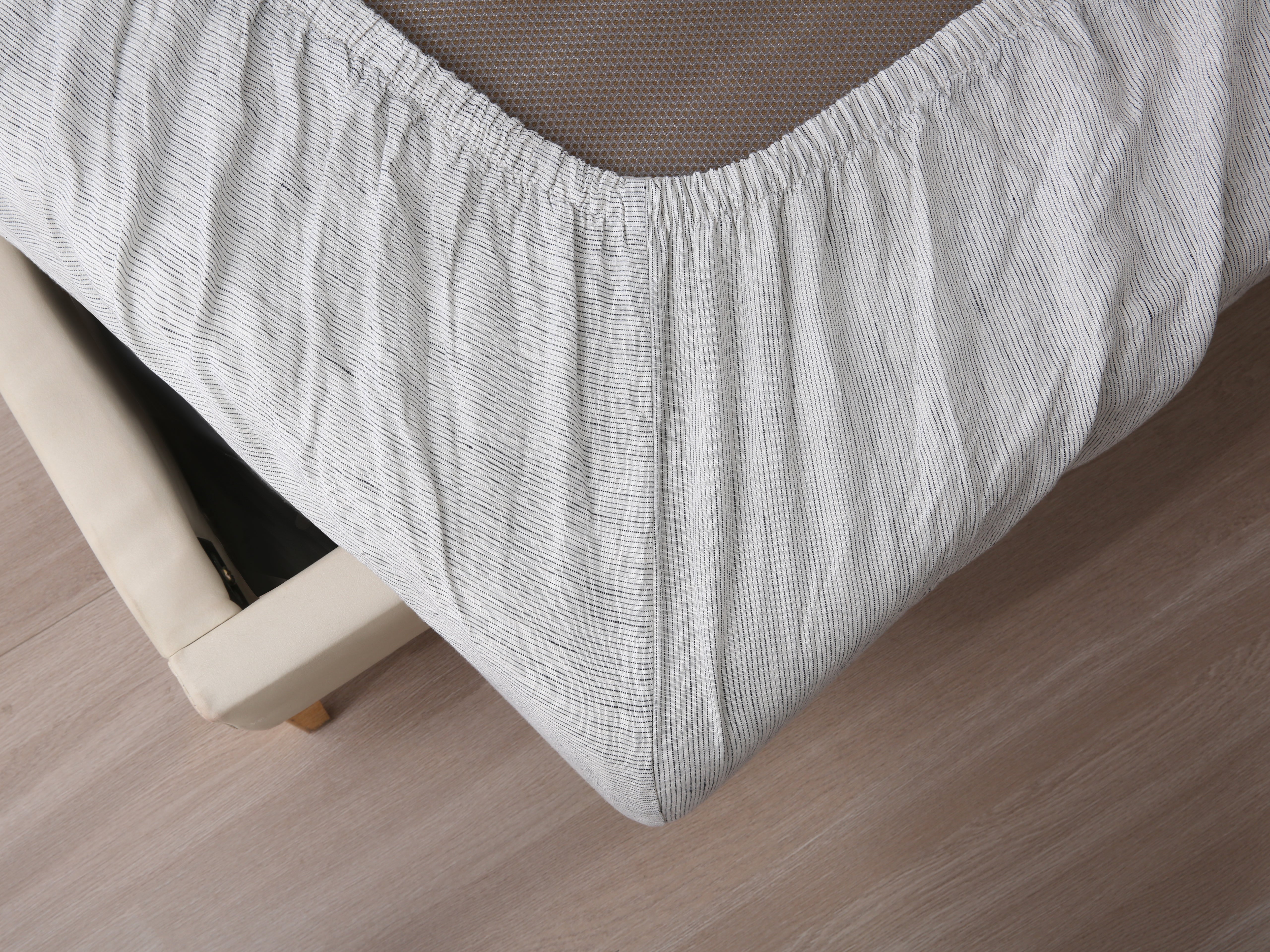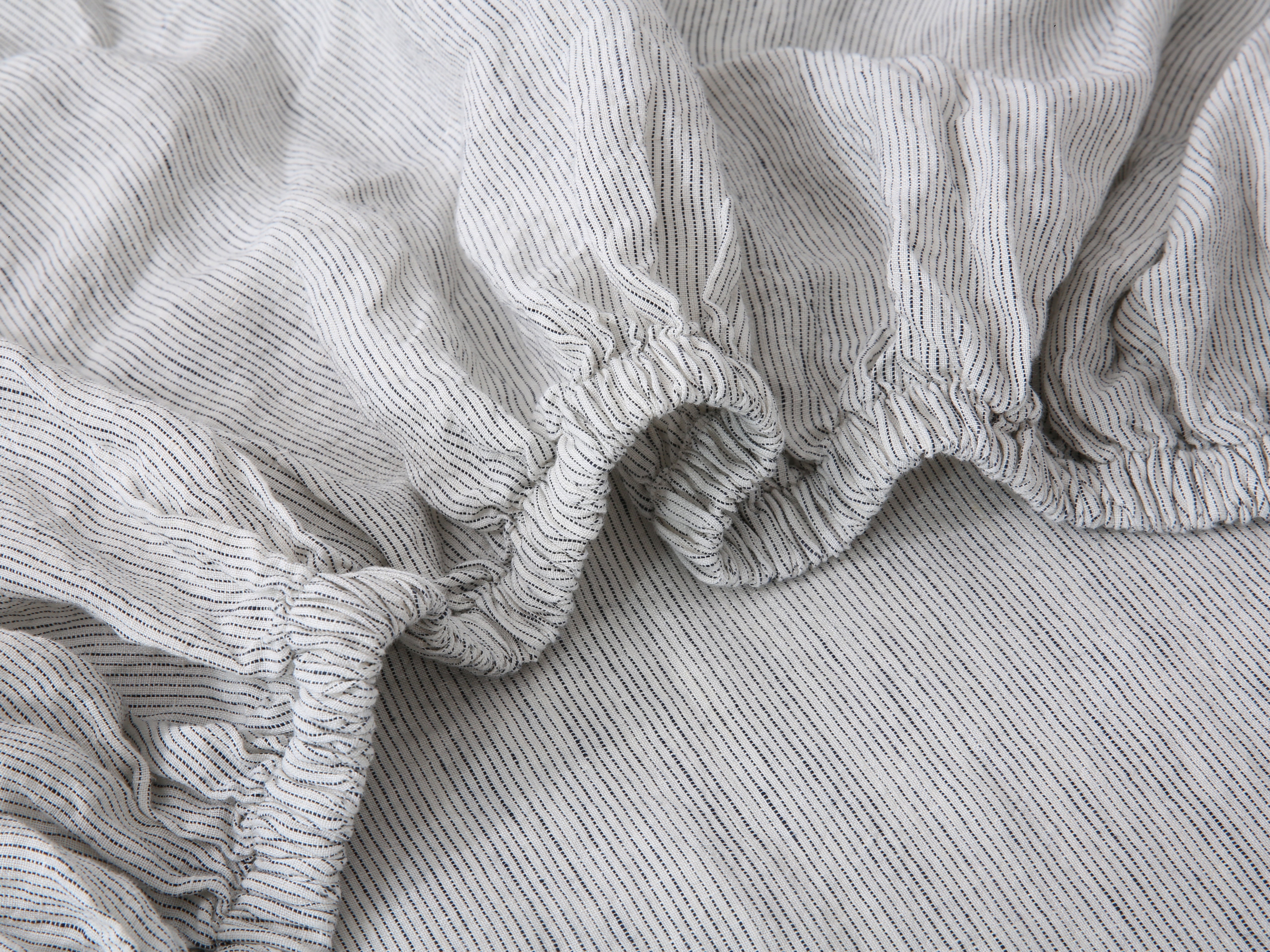 Fitted Linen Cot Sheet - PINSTRIPE - Selah + Stone Fitted Linen Cot Sheet - PINSTRIPE - Selah + Stone