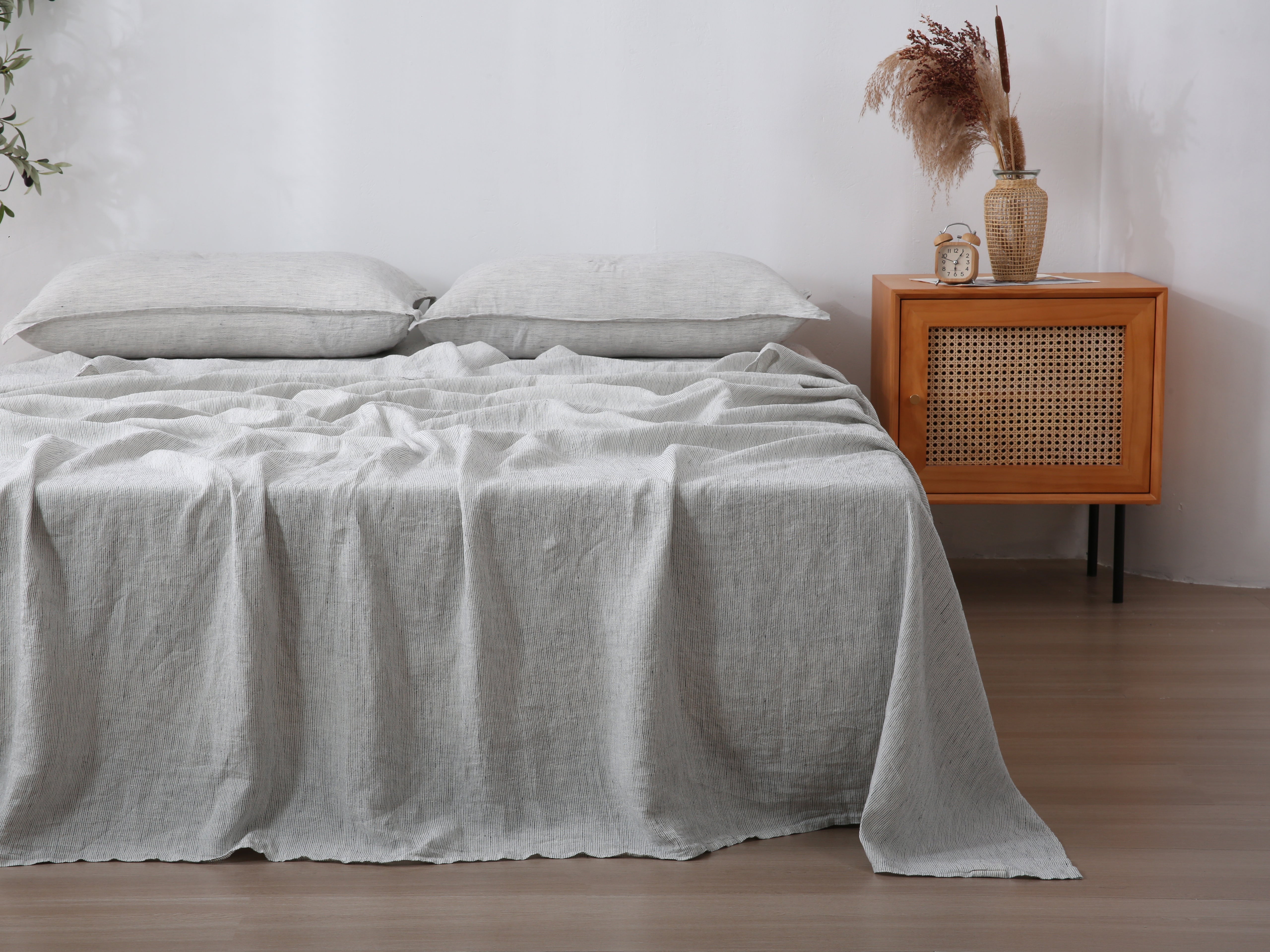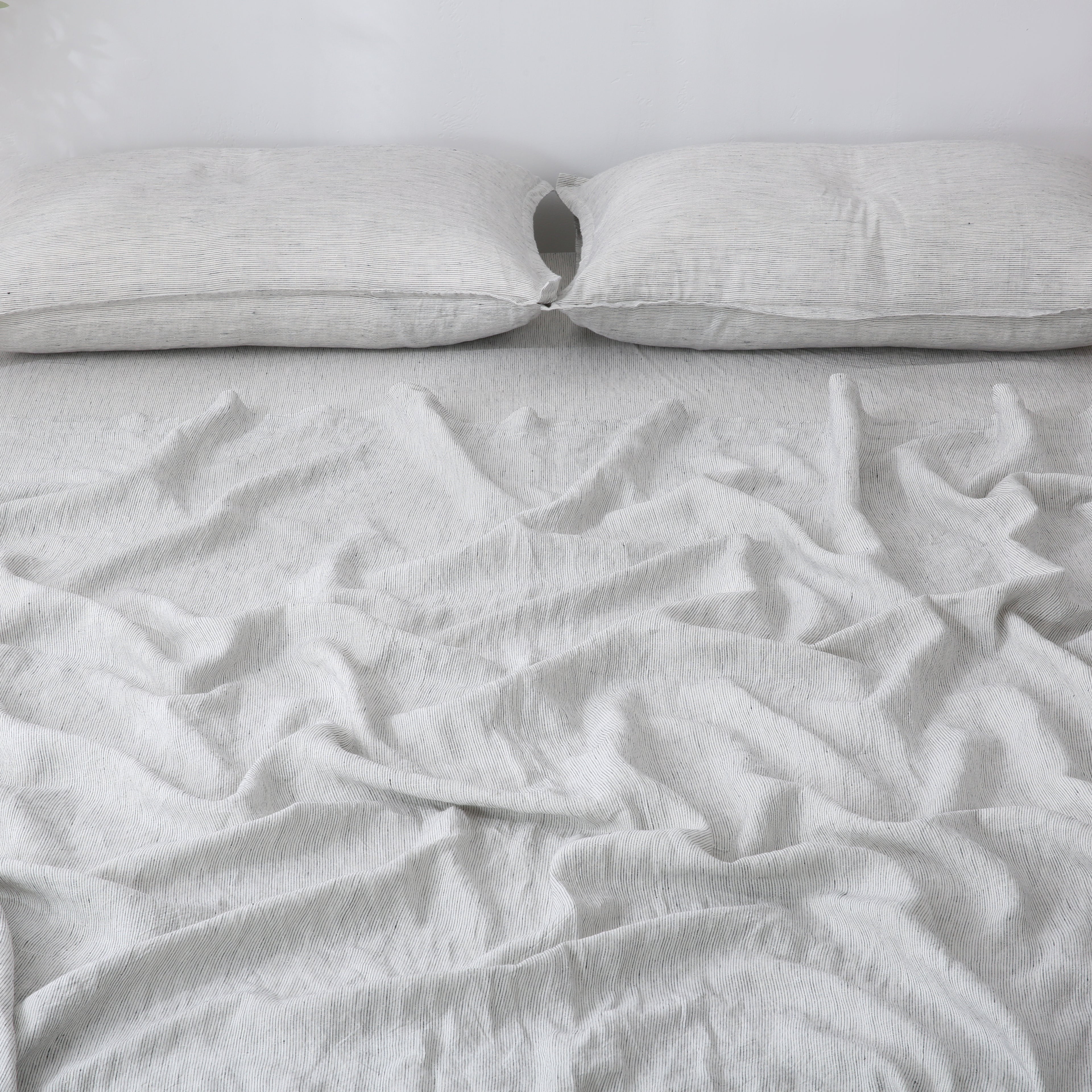 Our "PINSTRIPE" Flat Sheet is Stonewashed 100% French Flax Linen.