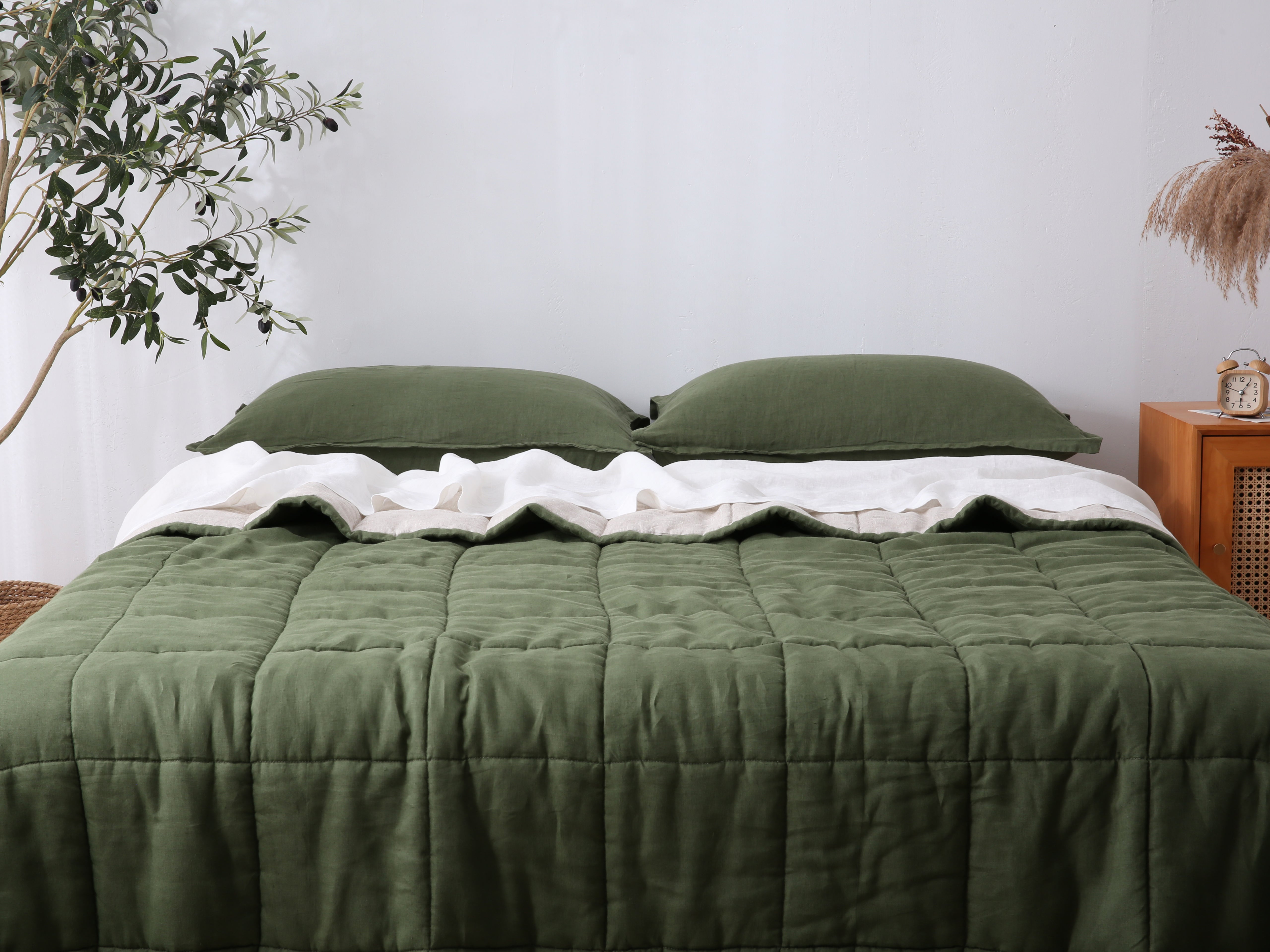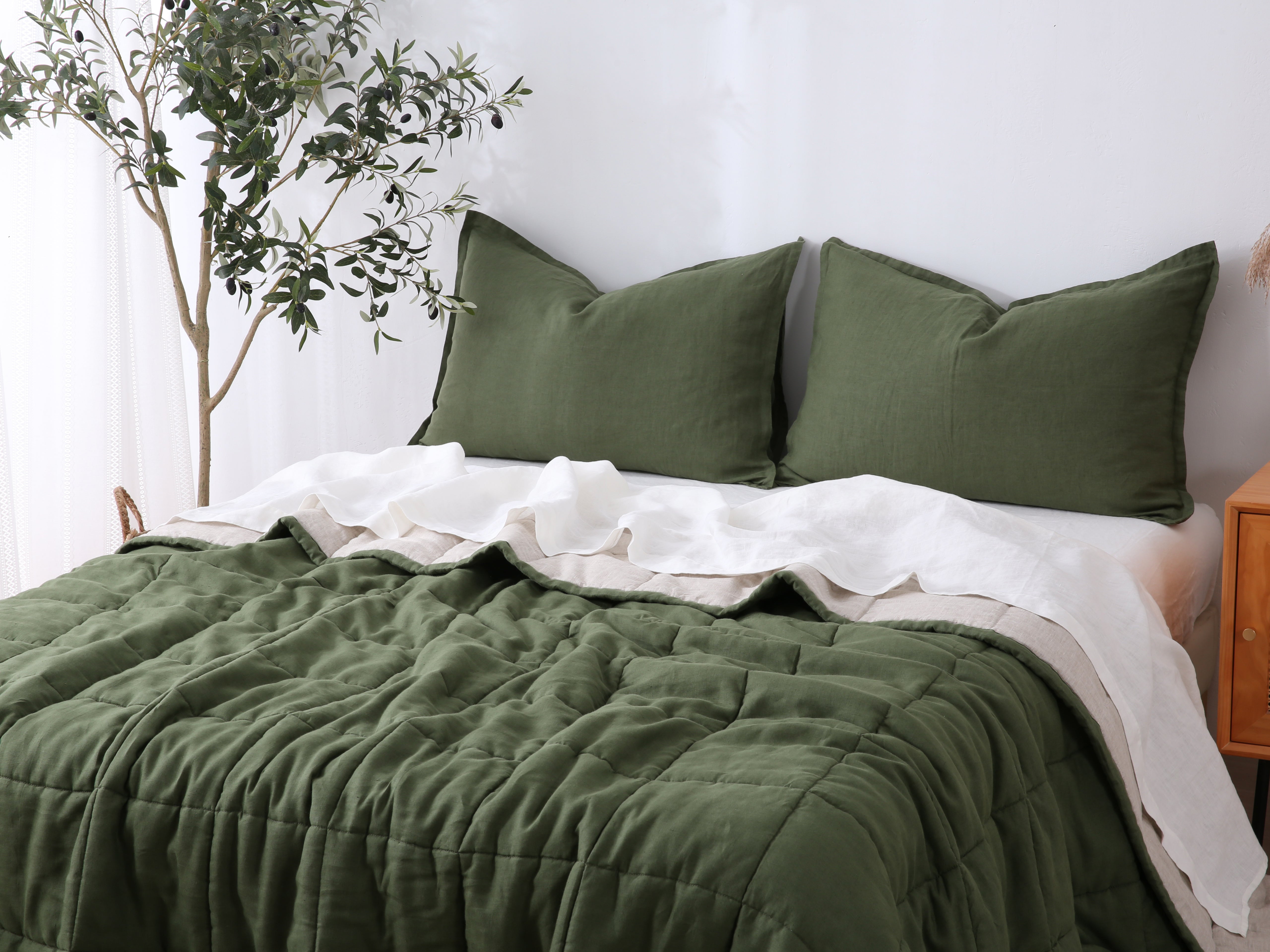 Quilted Linen Blanket - FERN - Selah + Stone Quilted Linen Blanket - FERN - Selah + Stone
