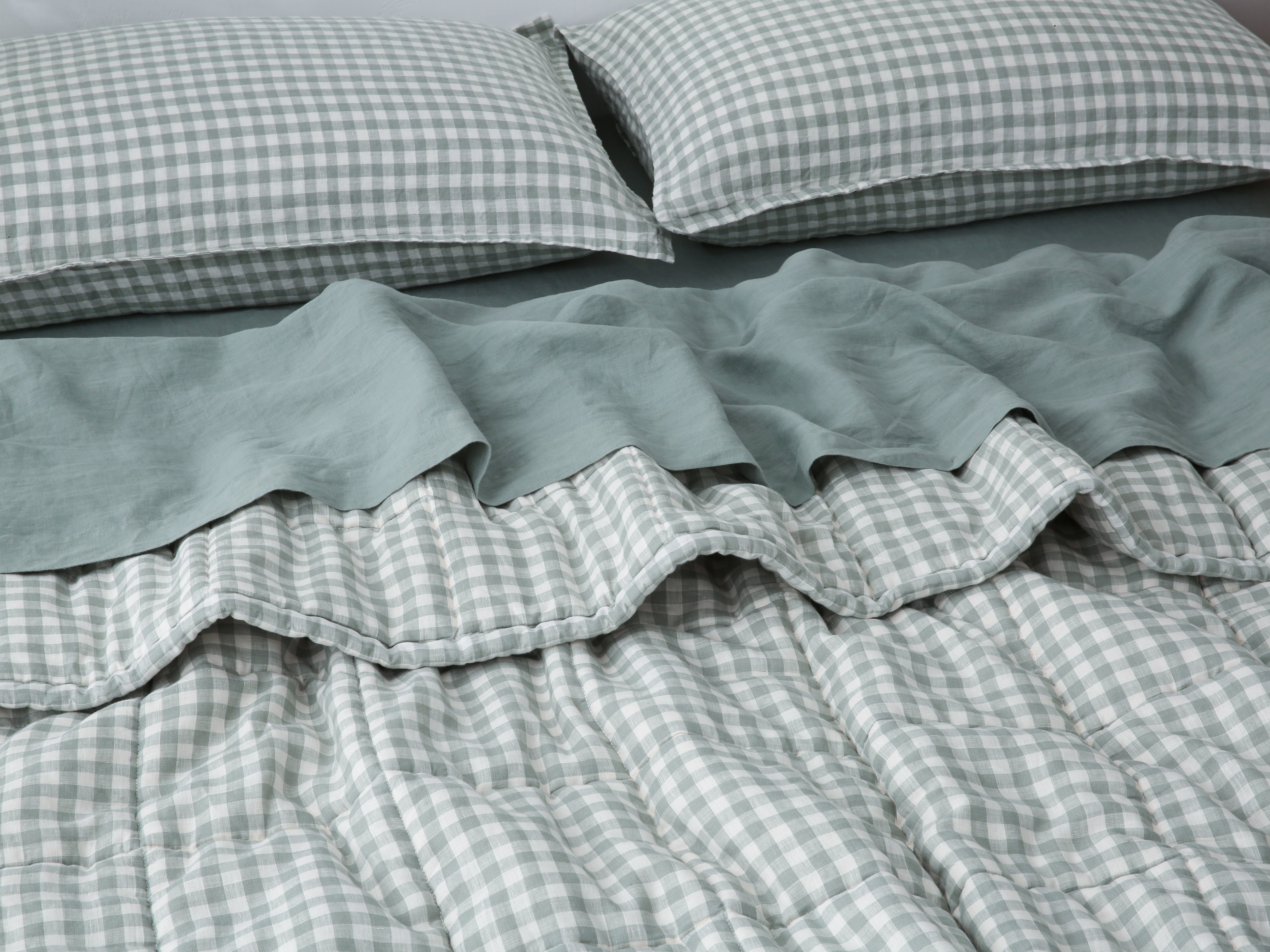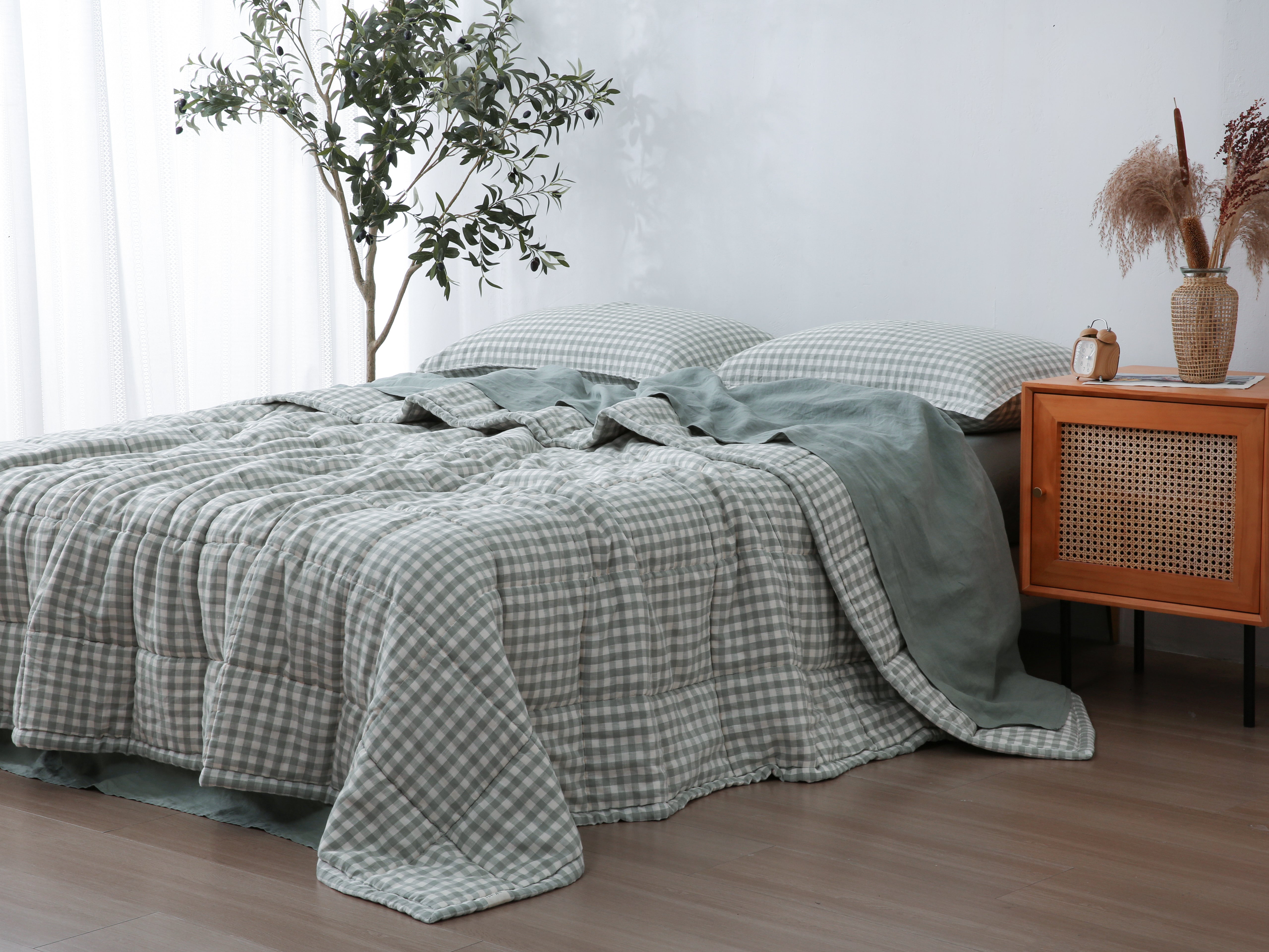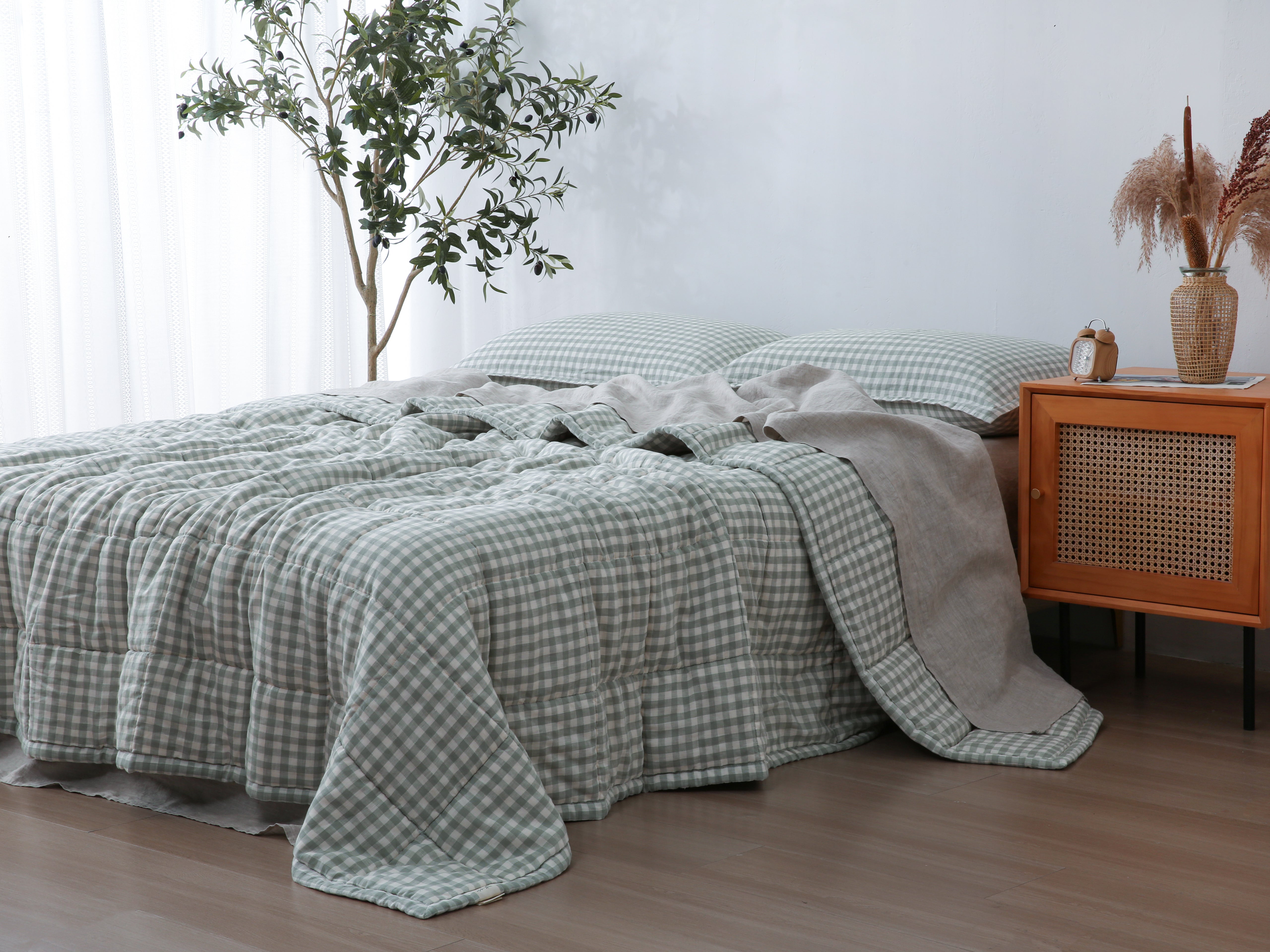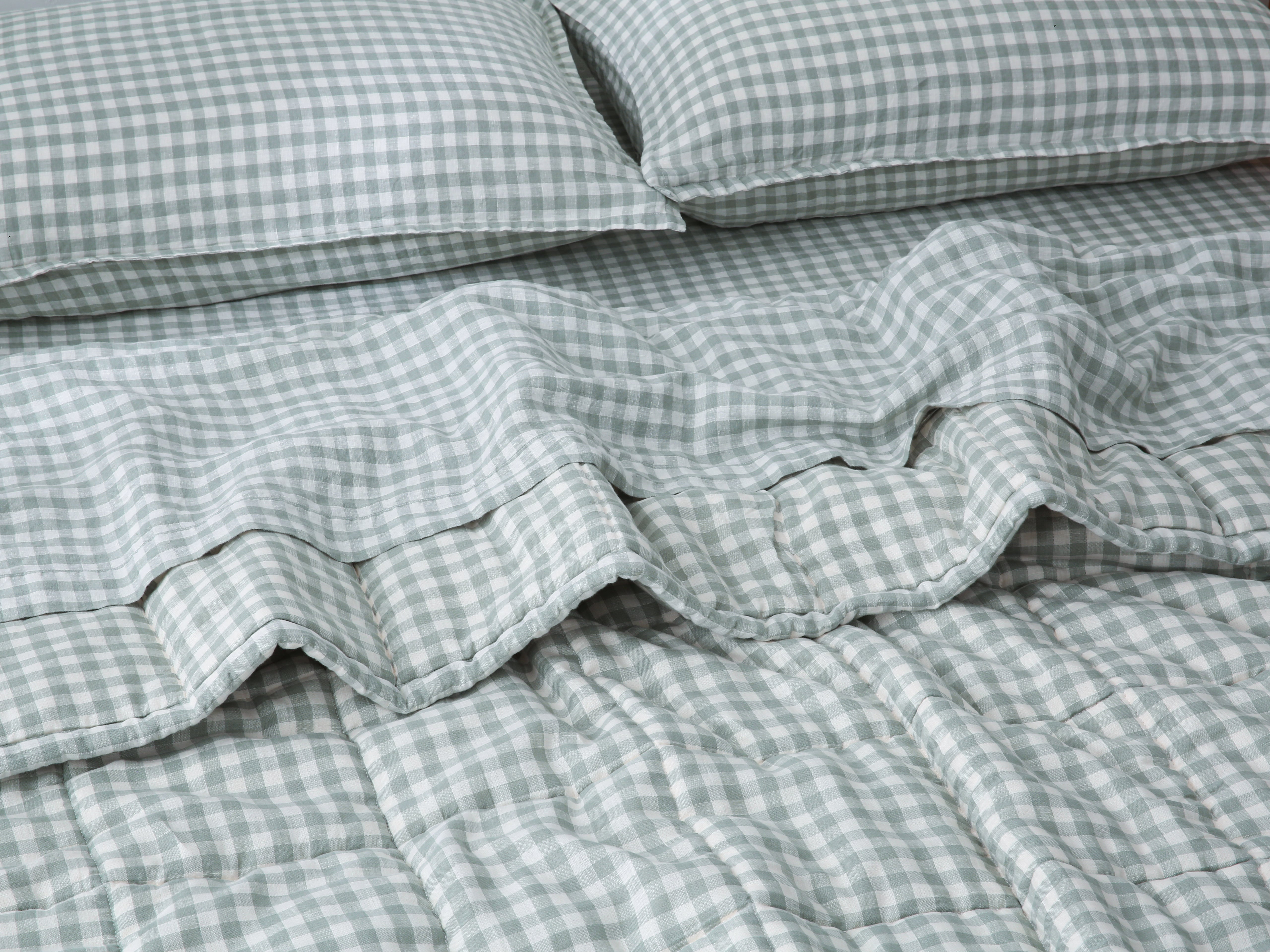 Quilted Linen Blanket - Sage Gingham