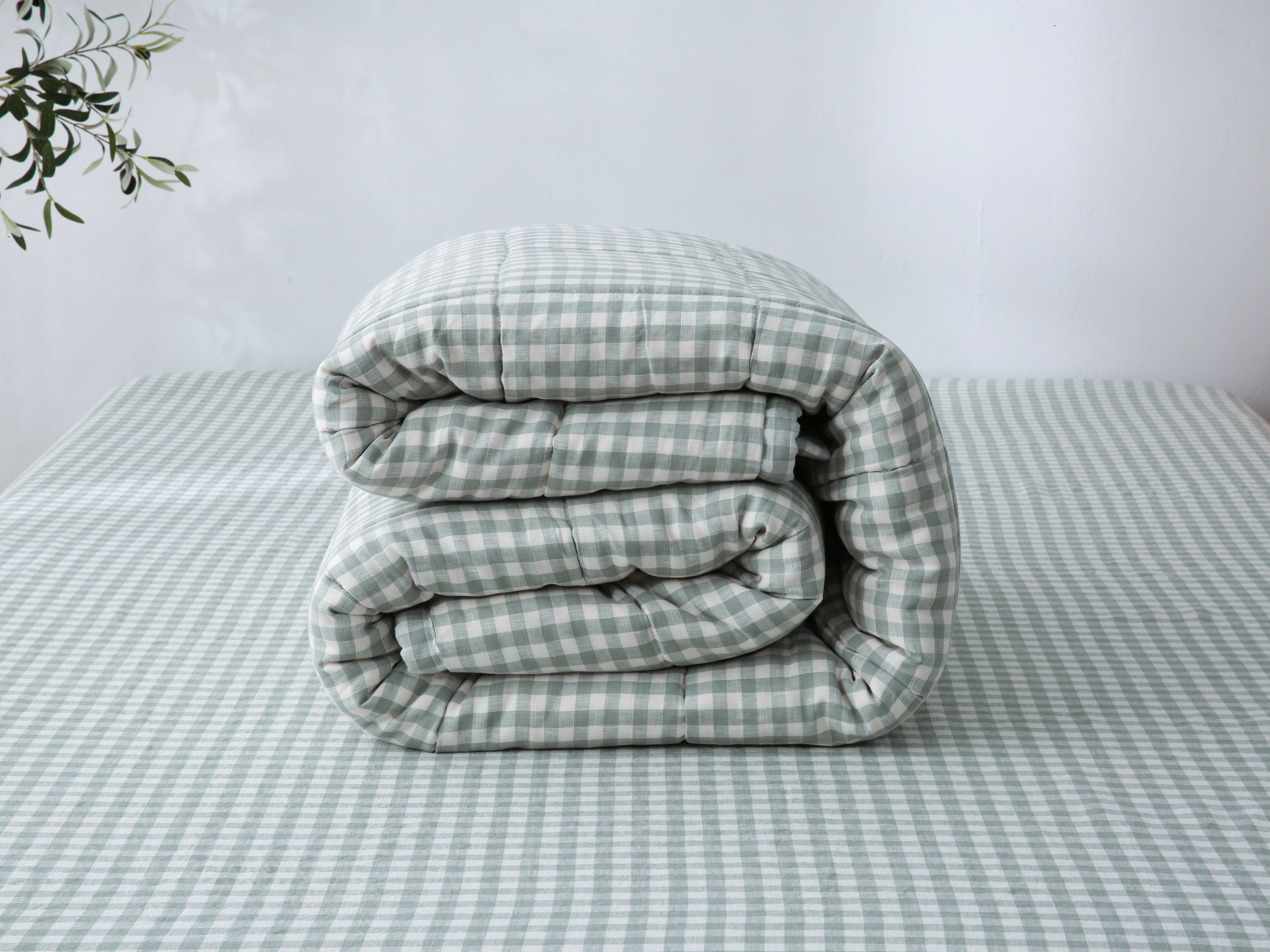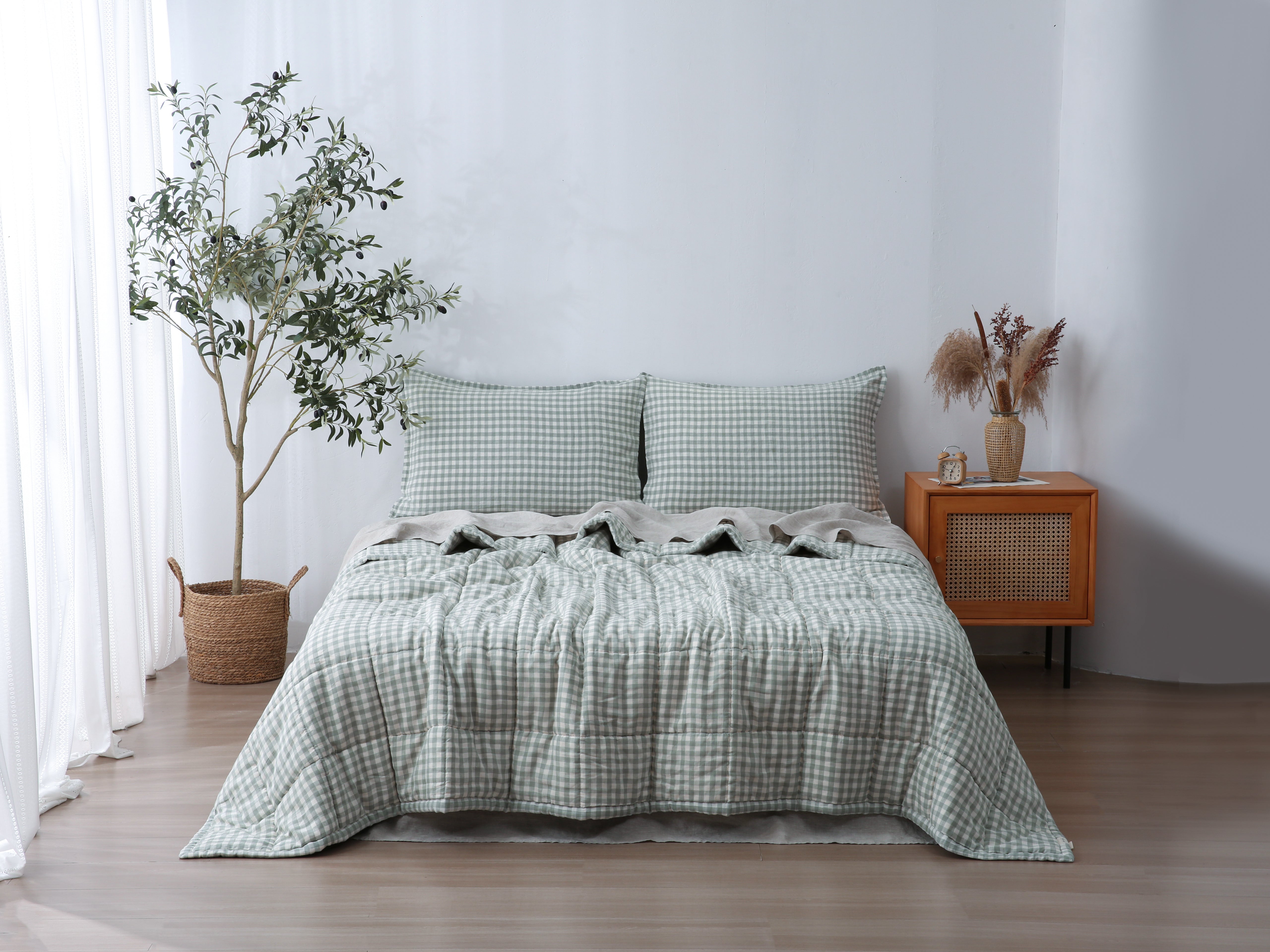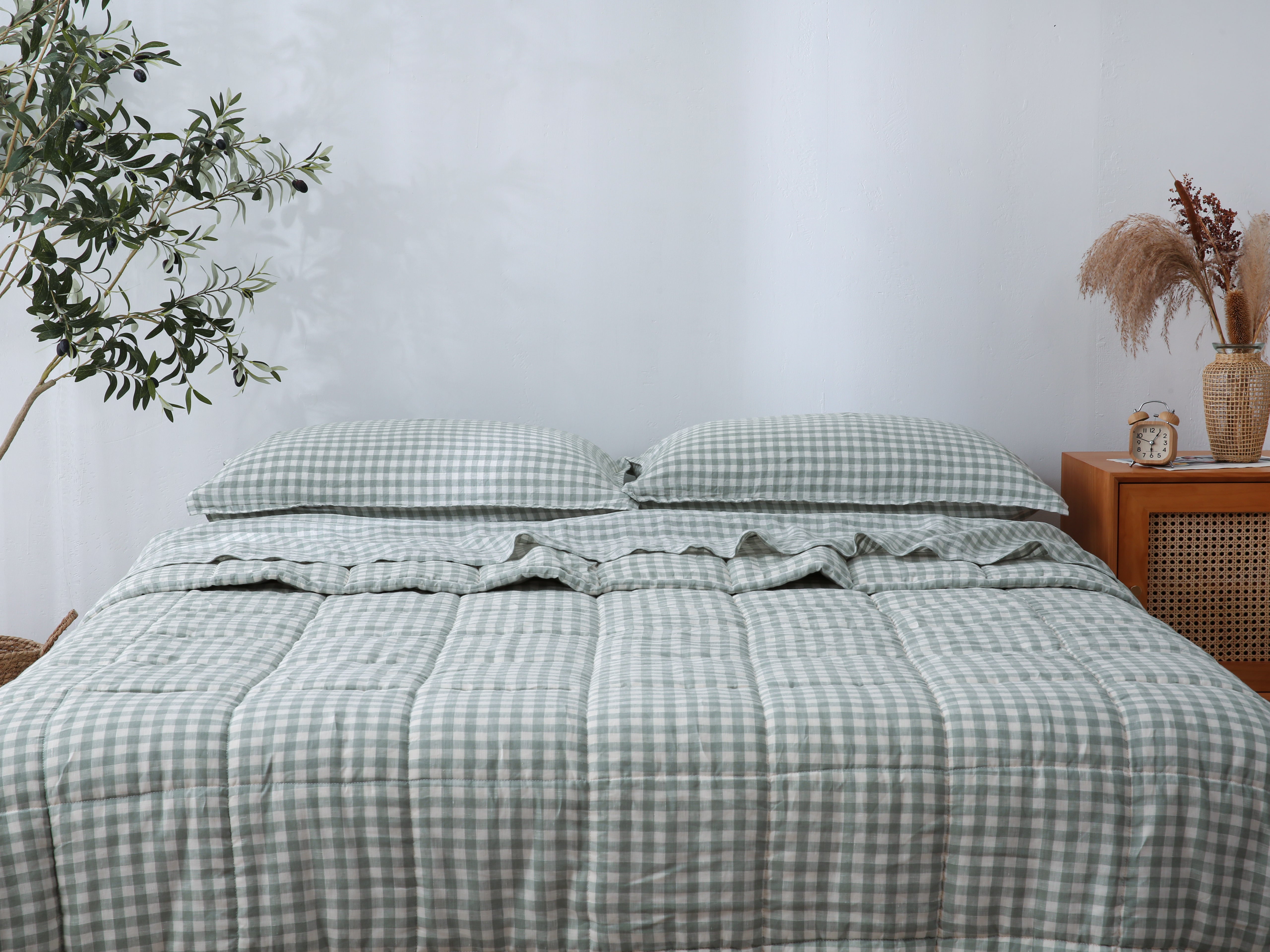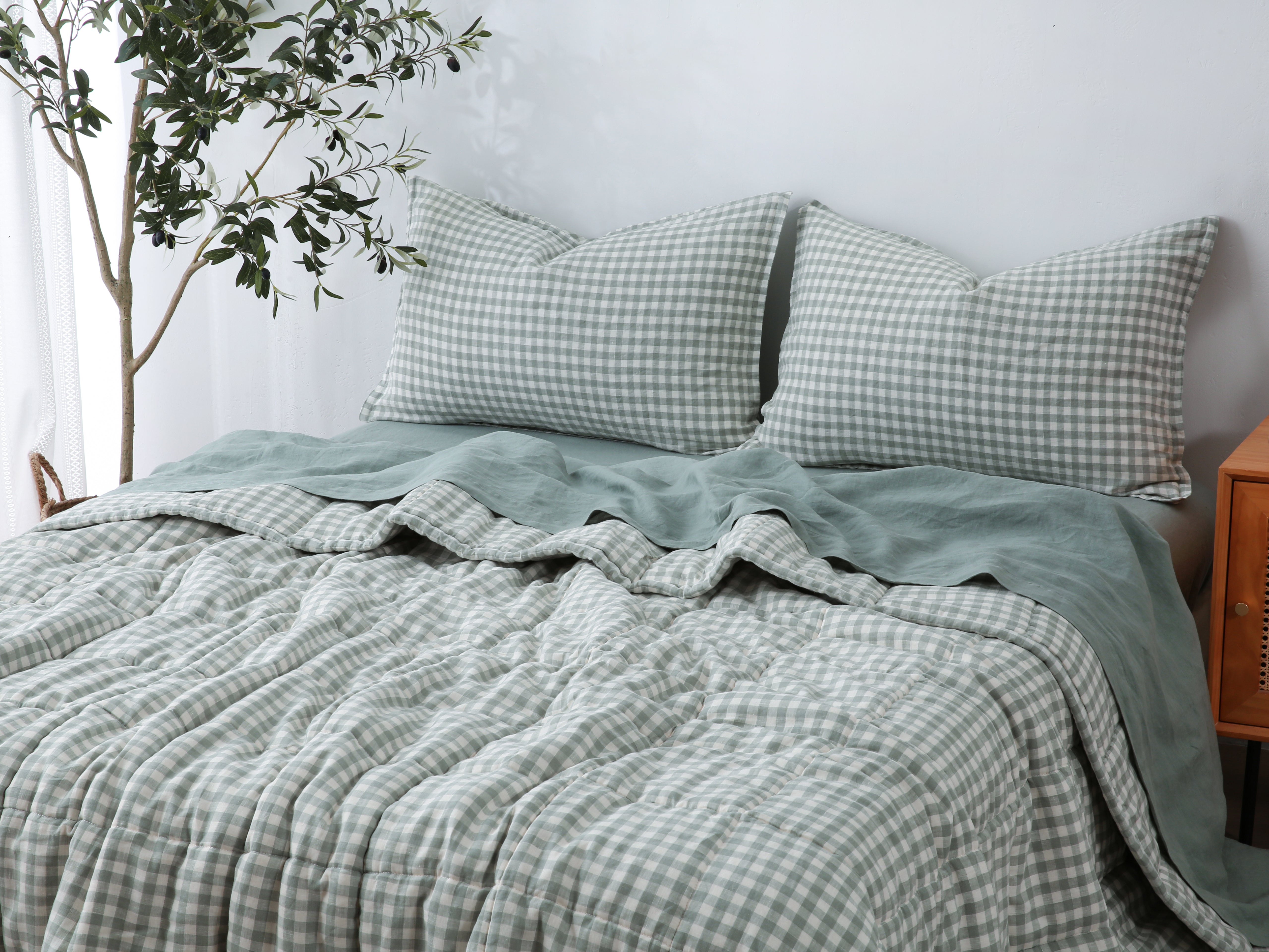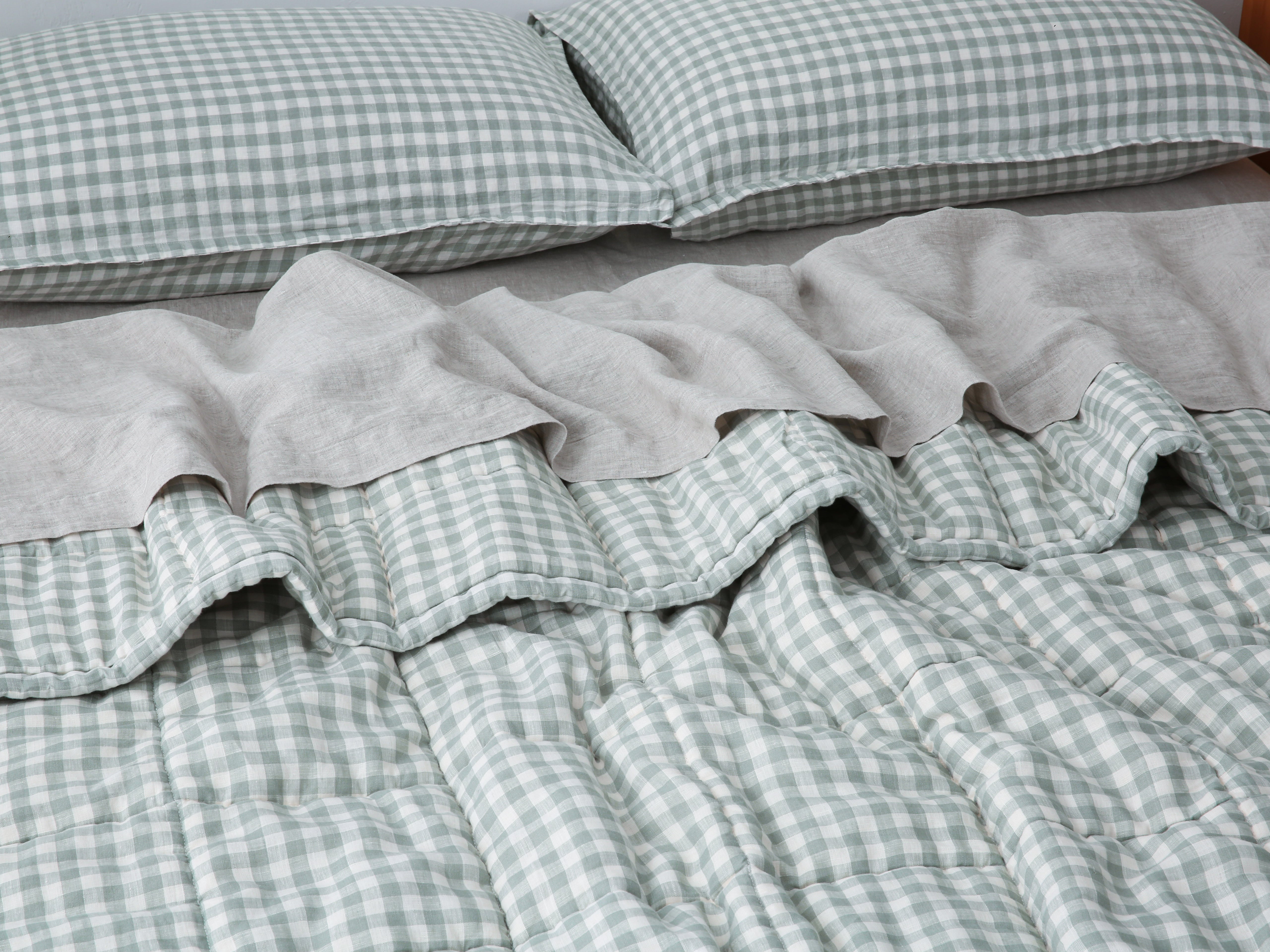 Quilted Linen Blanket - Sage Gingham