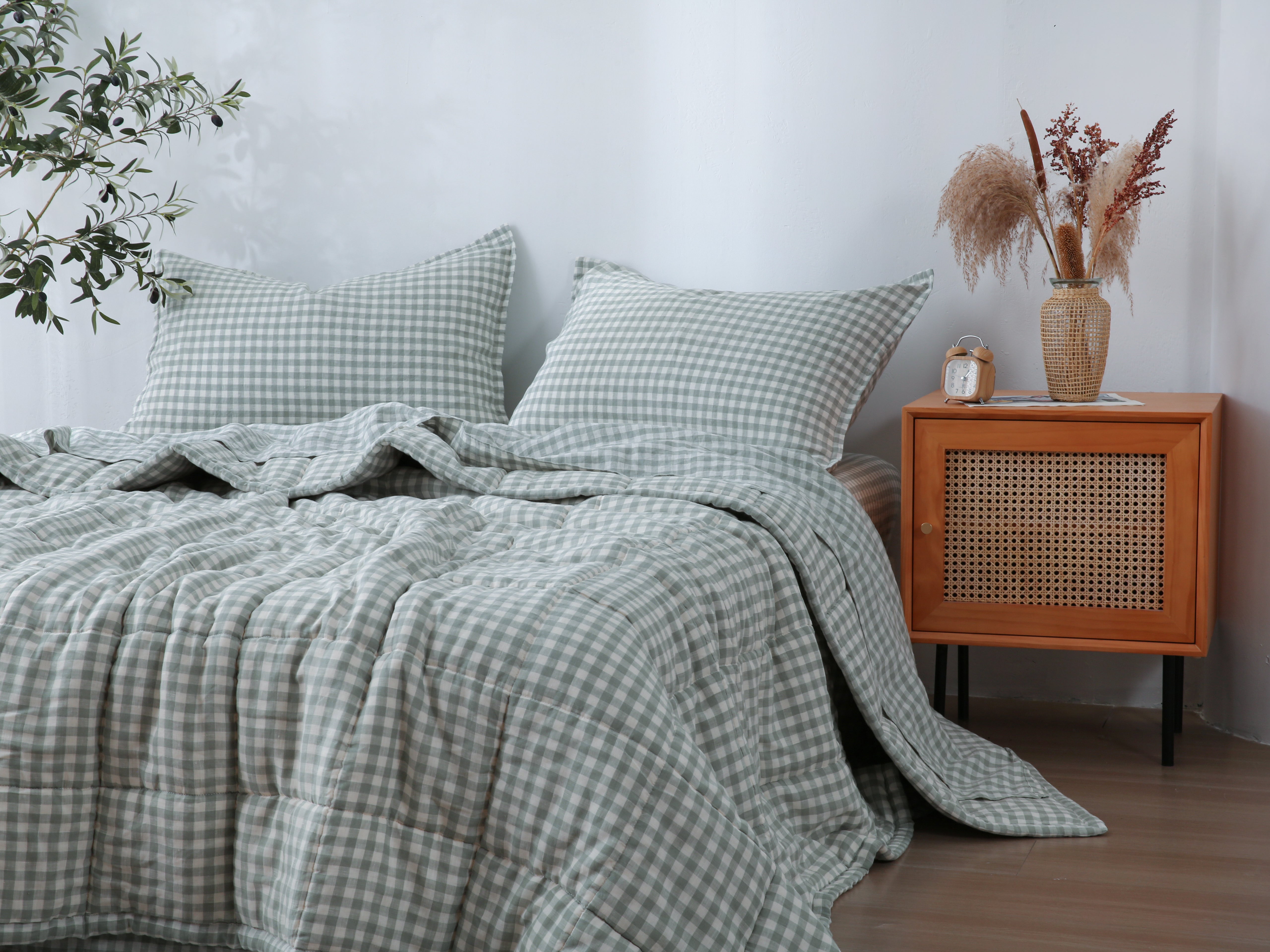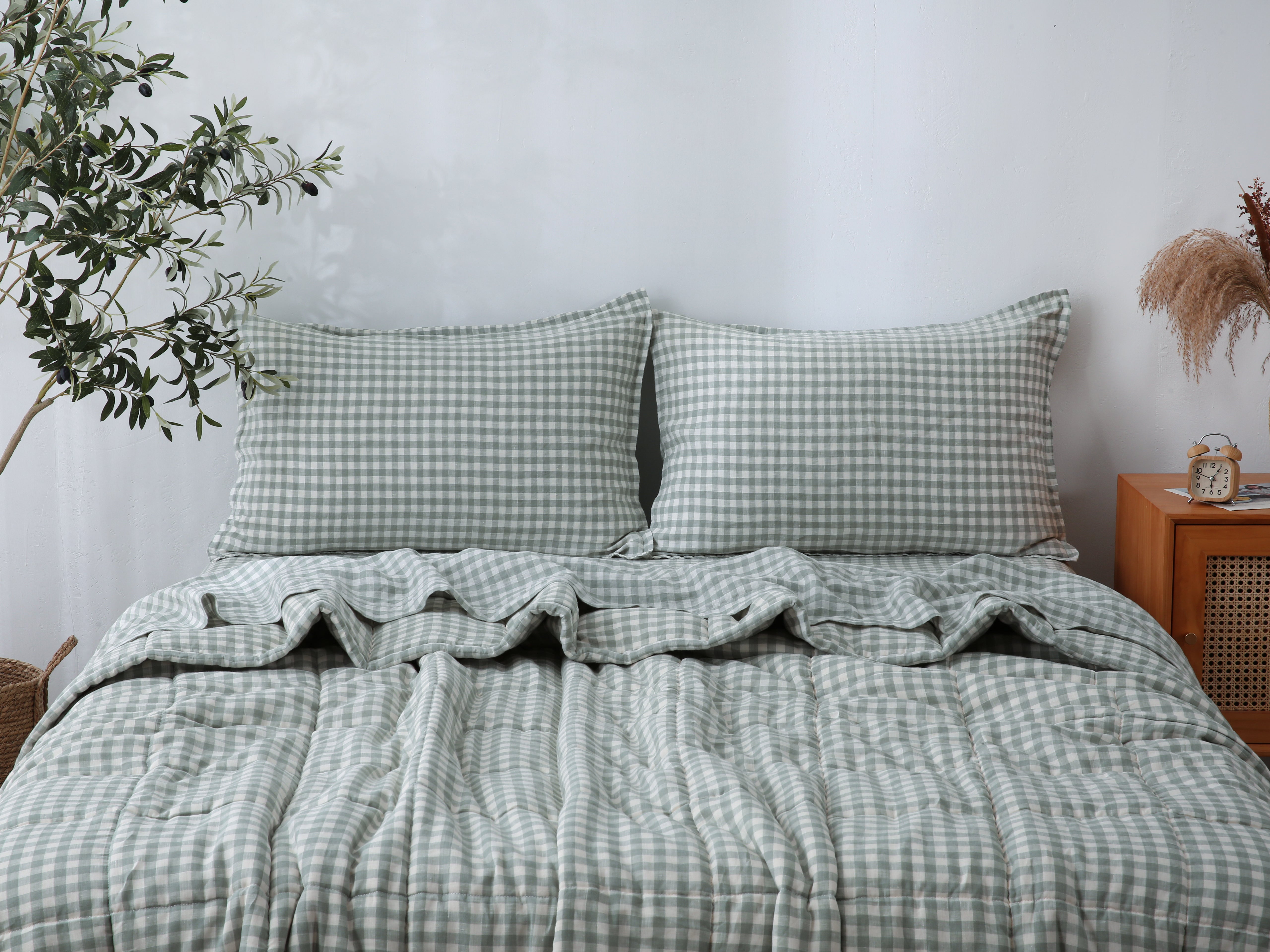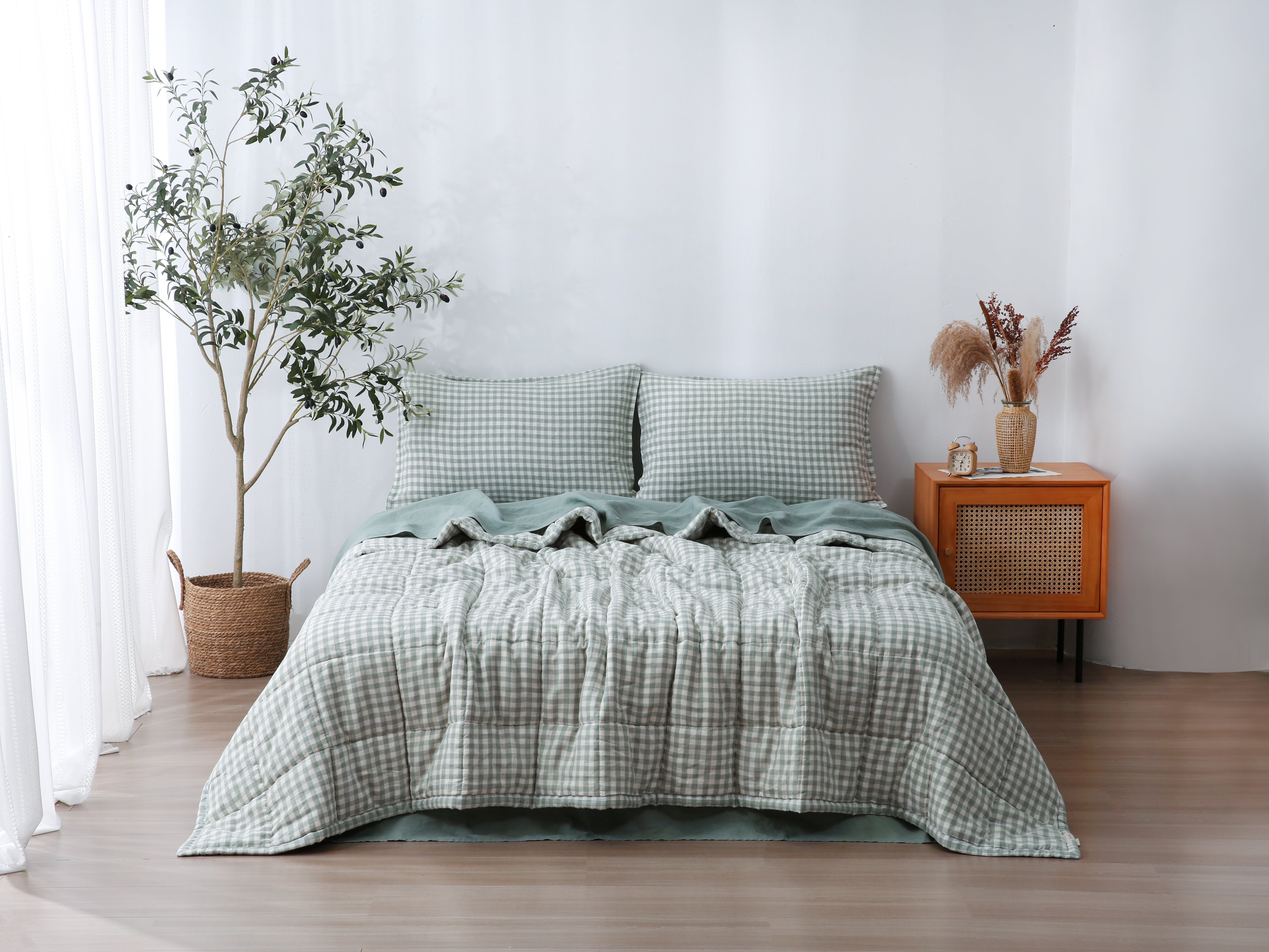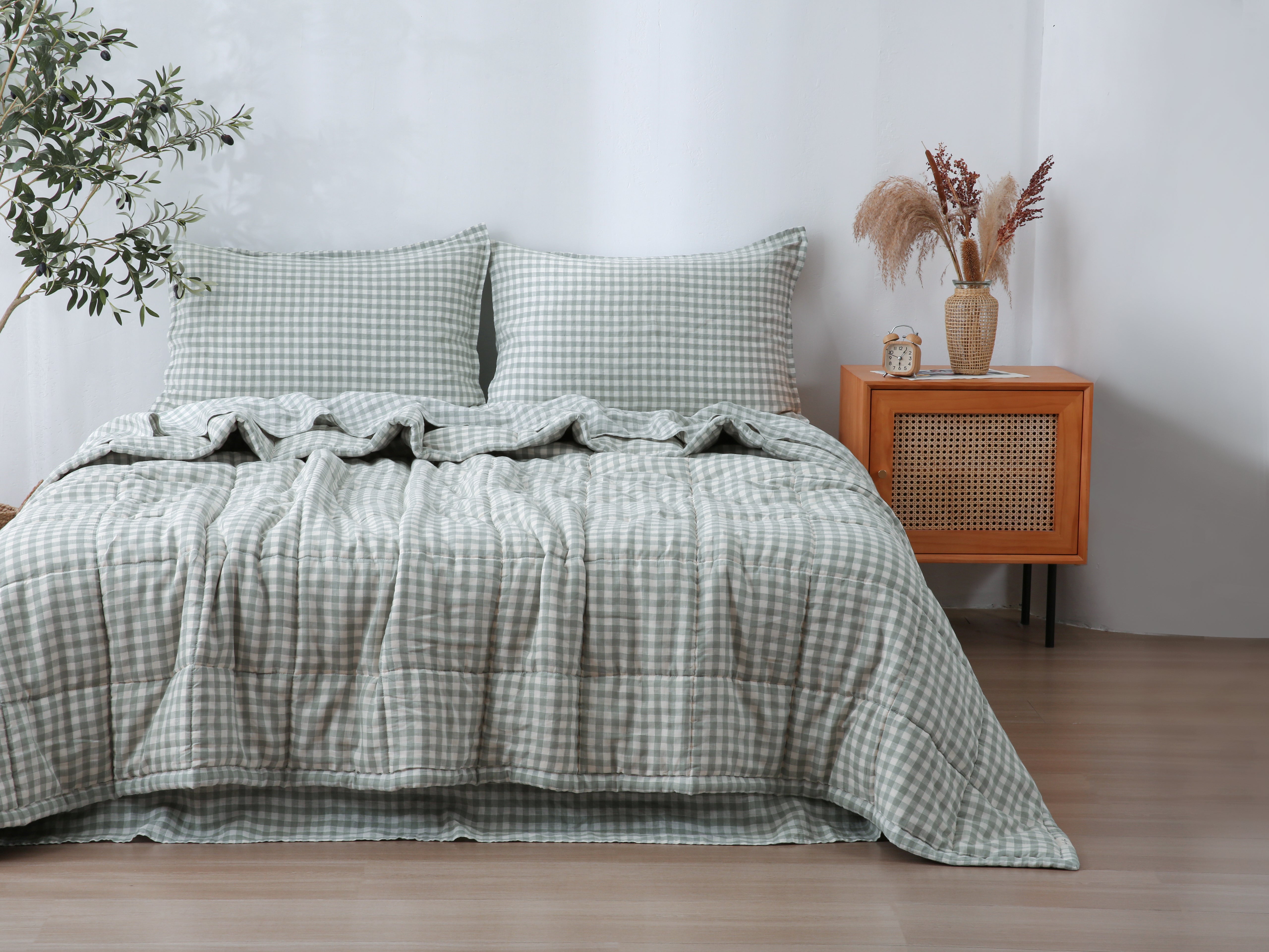 Quilted Linen Blanket - Sage Gingham