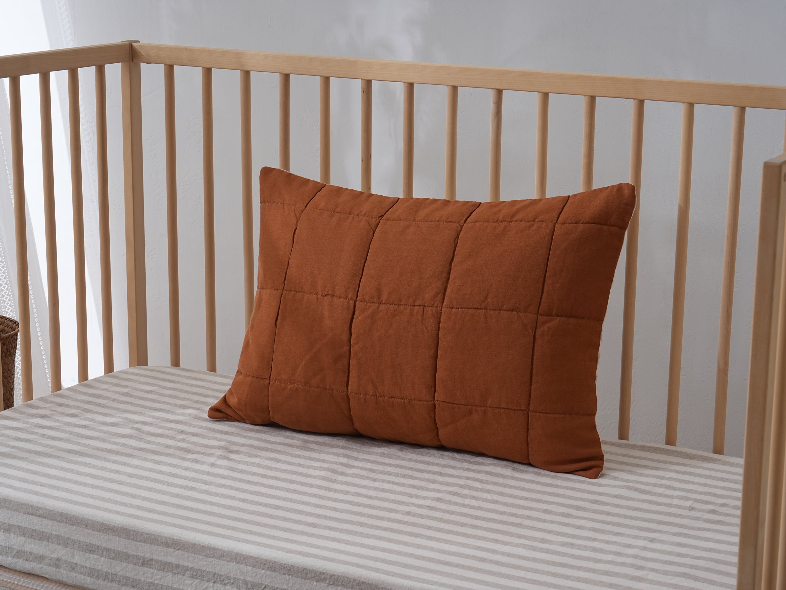 Our Quilted Crib Pillow Cases are made to reduce waste. To stay sustainable, we use the leftover offcuts of fabric from our Quilts to make our matching quilted linen pillow cases.