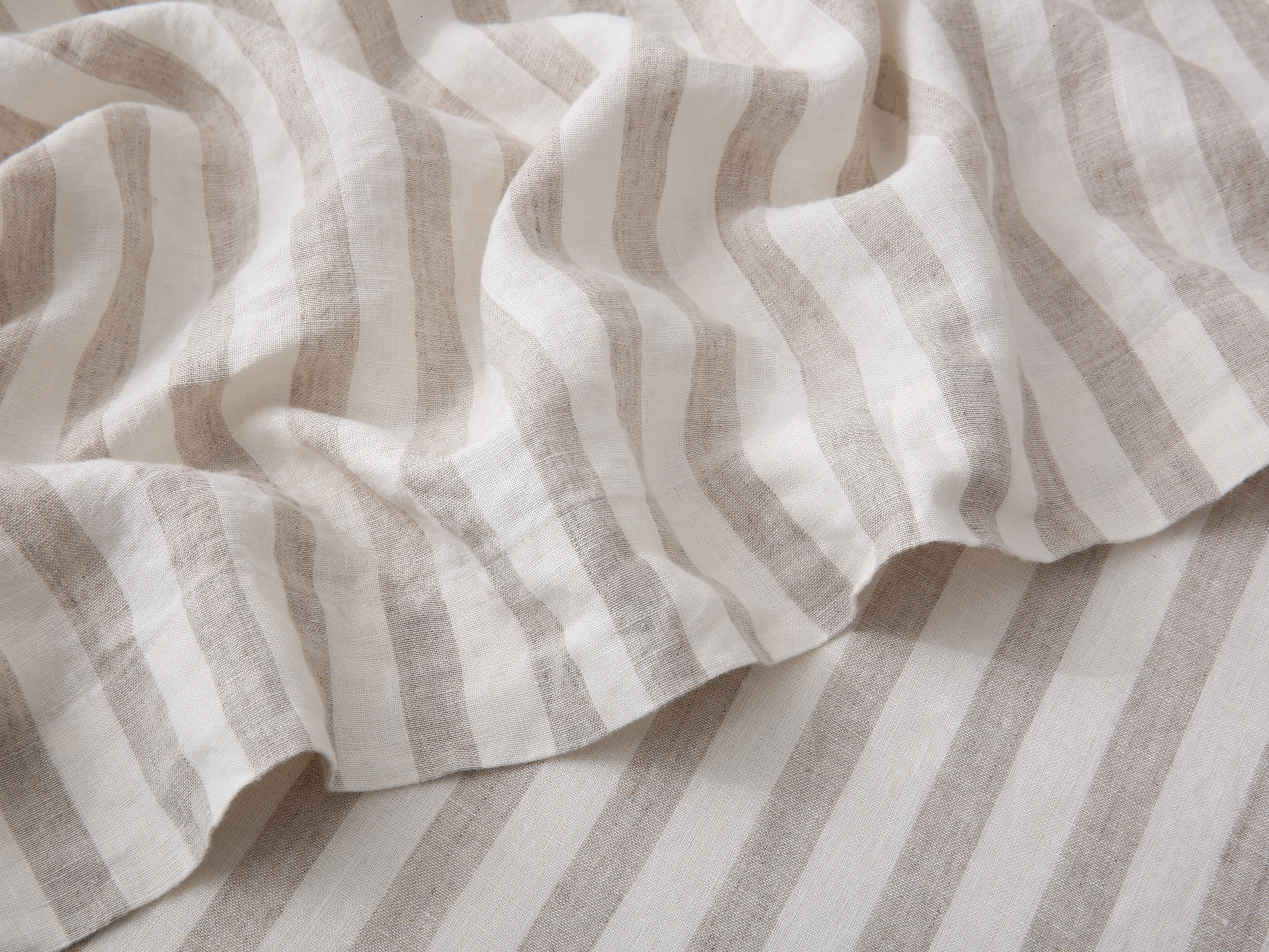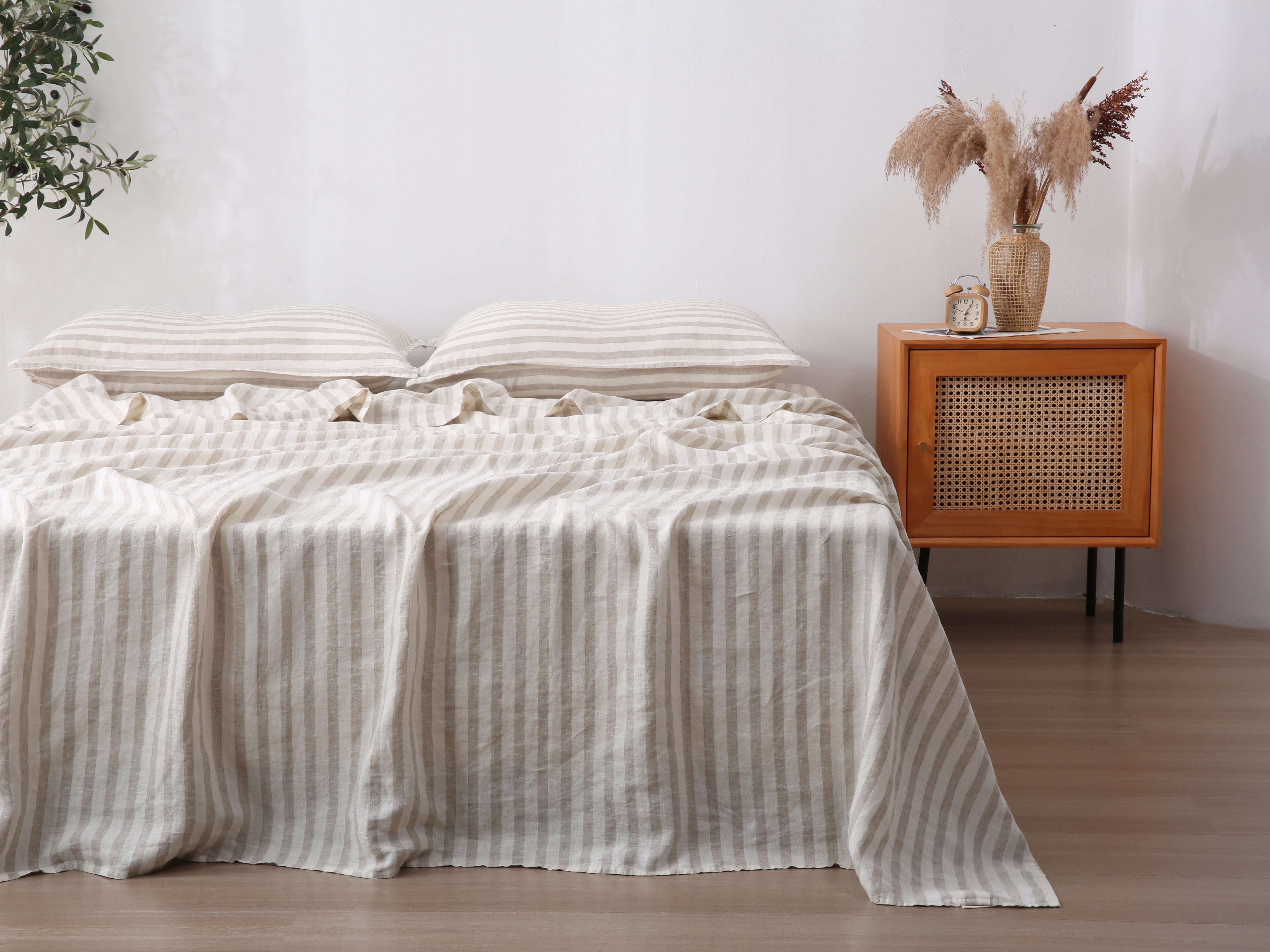 Our "SAND STRIPE" Flat Sheet is Stonewashed 100% French Flax Linen.