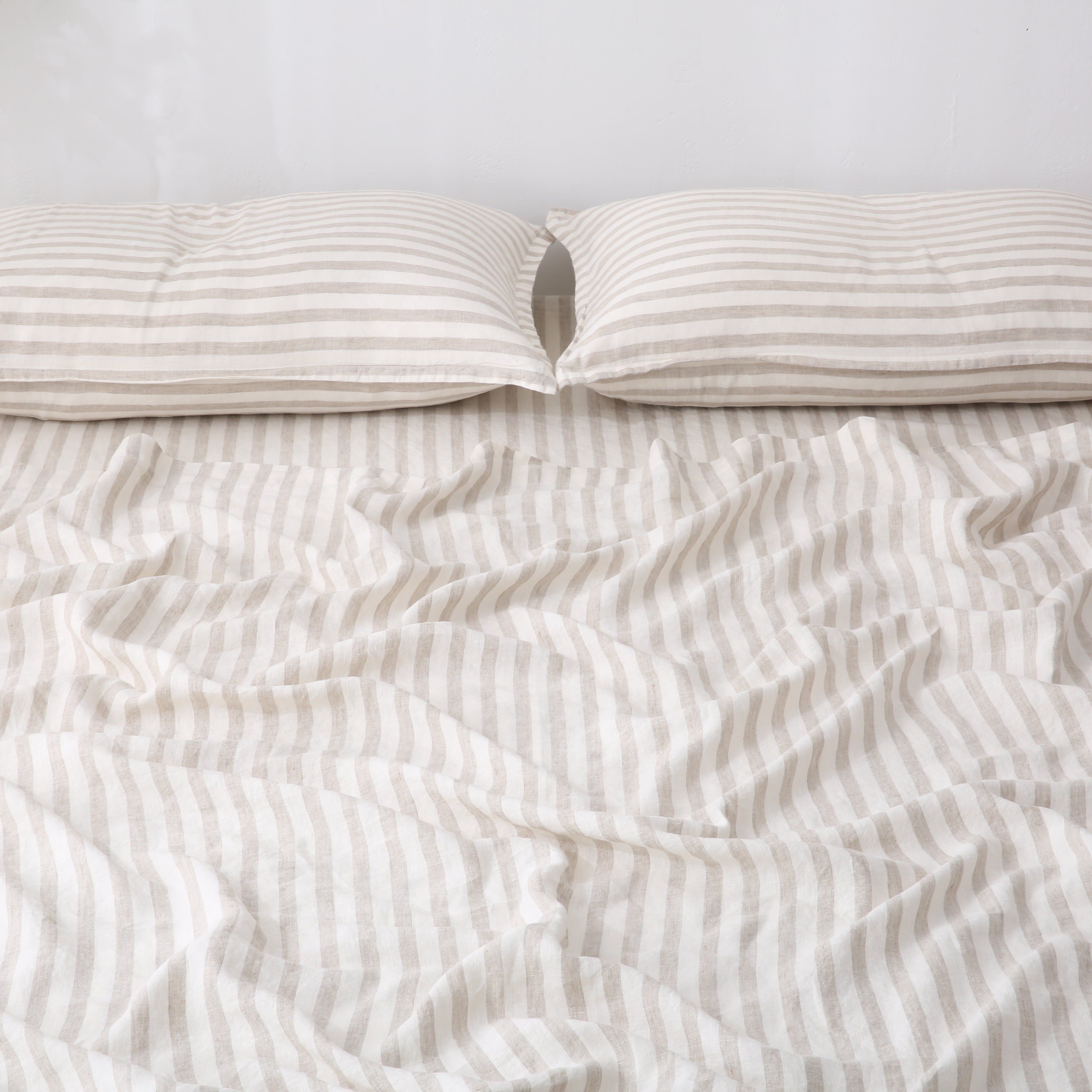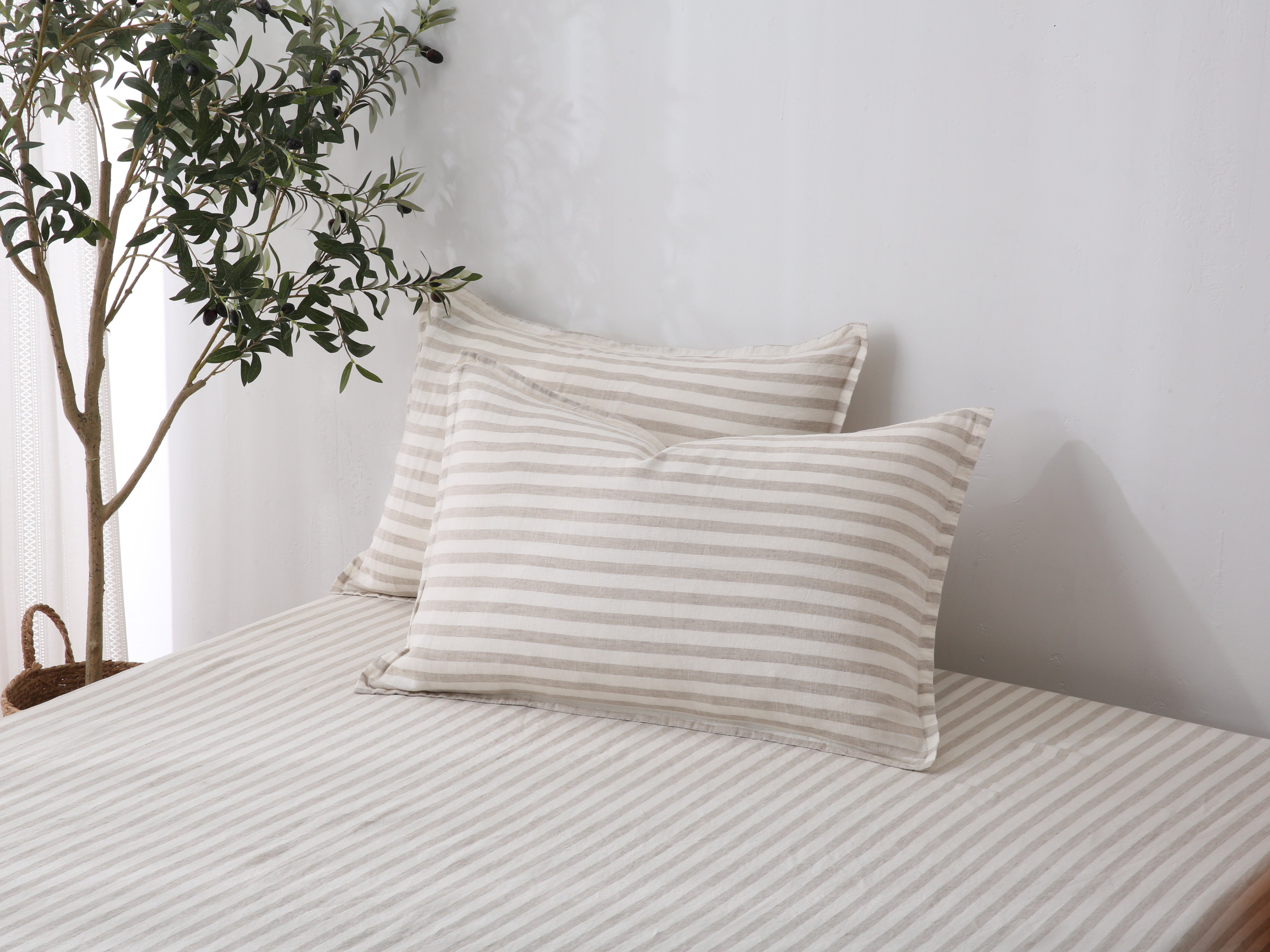 Our "SAND STRIPE" Sheet Set is Stonewashed 100% French Flax Linen.